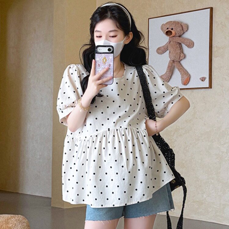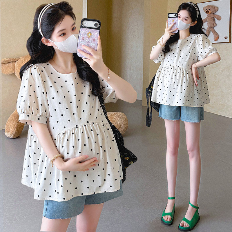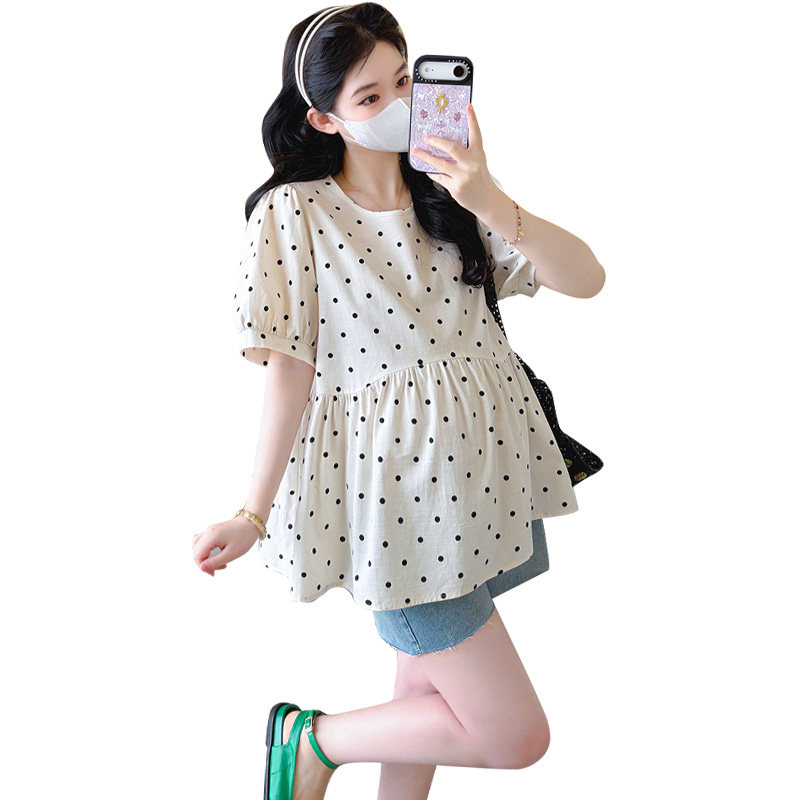 短袖 波点上衣时尚 百搭怀孕娃娃衫 孕妇装 衣服衬衫 宽松大码 夏季 夏装