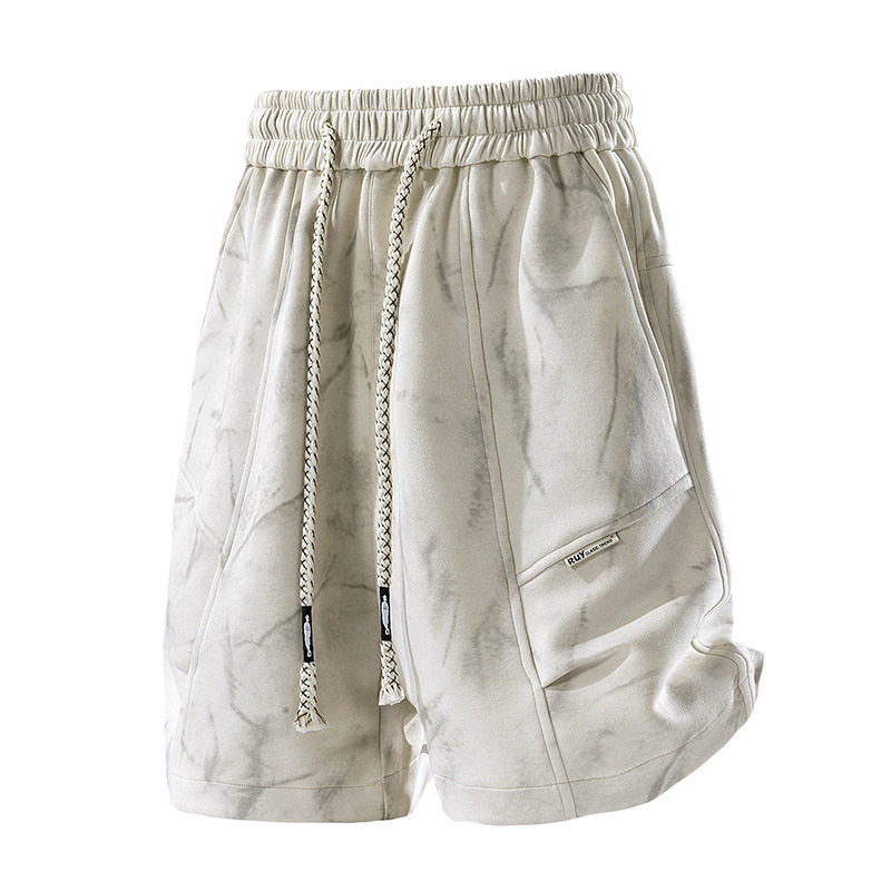 复古扎染短裤 夏季 新款 美式 微胖子中裤 男士 潮流宽松五分裤 加肥大码