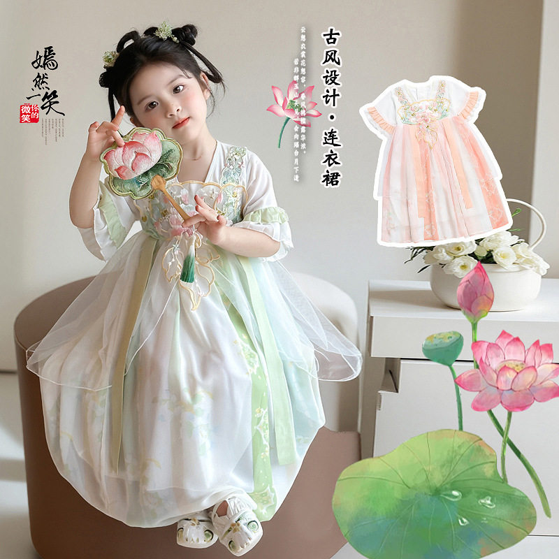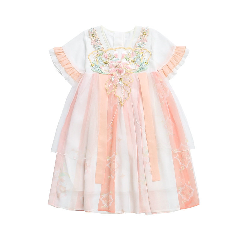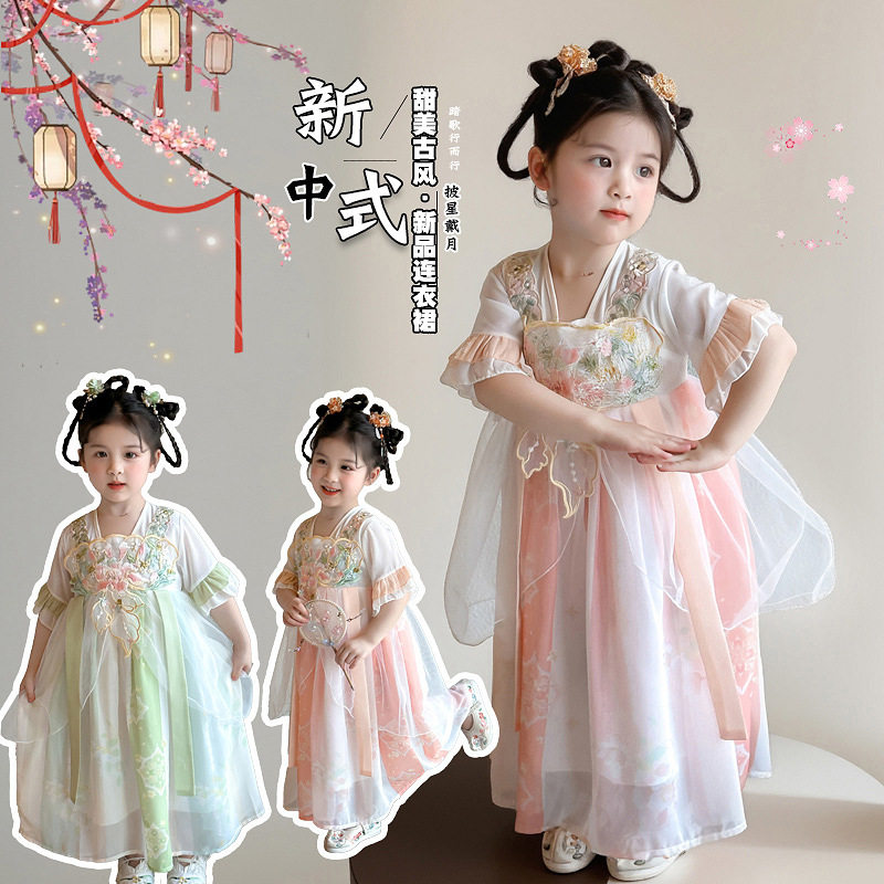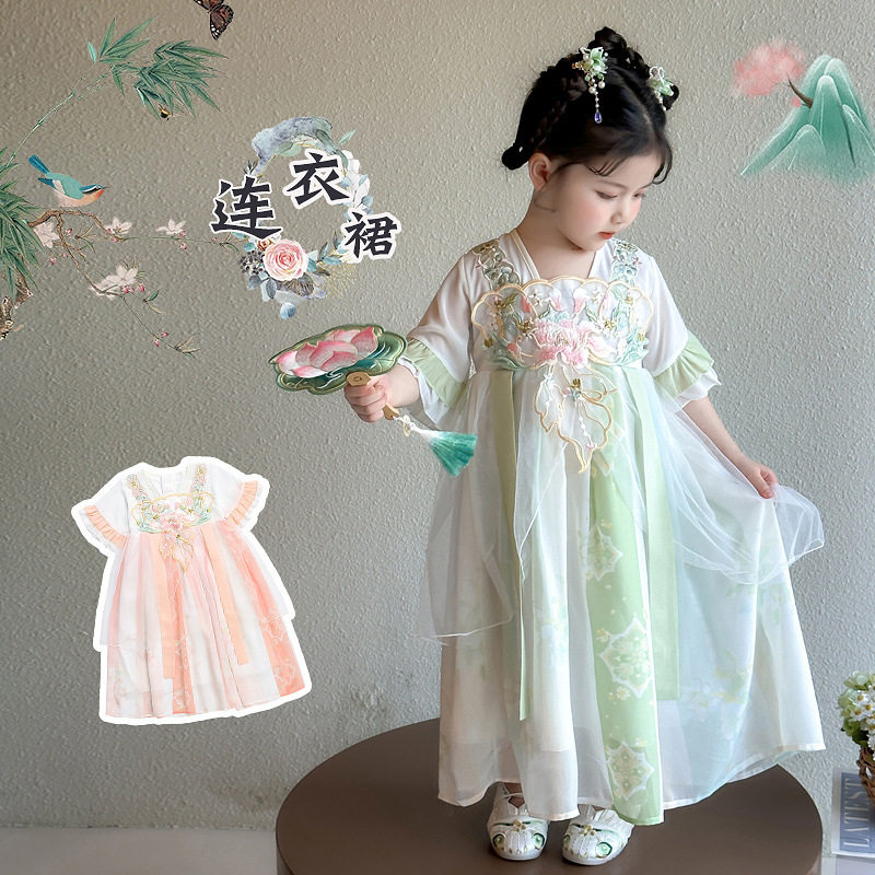 演出服装 女宝宝古风公主襦裙古装 2026新款 女童刺绣花朵汉服裙夏季