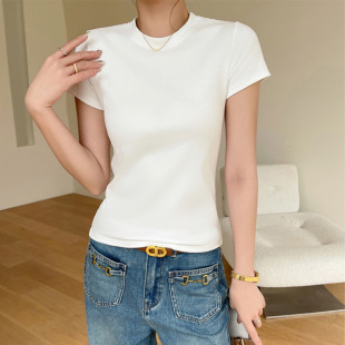 t恤女式 打底衫 春夏季 修身 可穿200斤 可外穿大码 纯棉小圆领正肩短袖