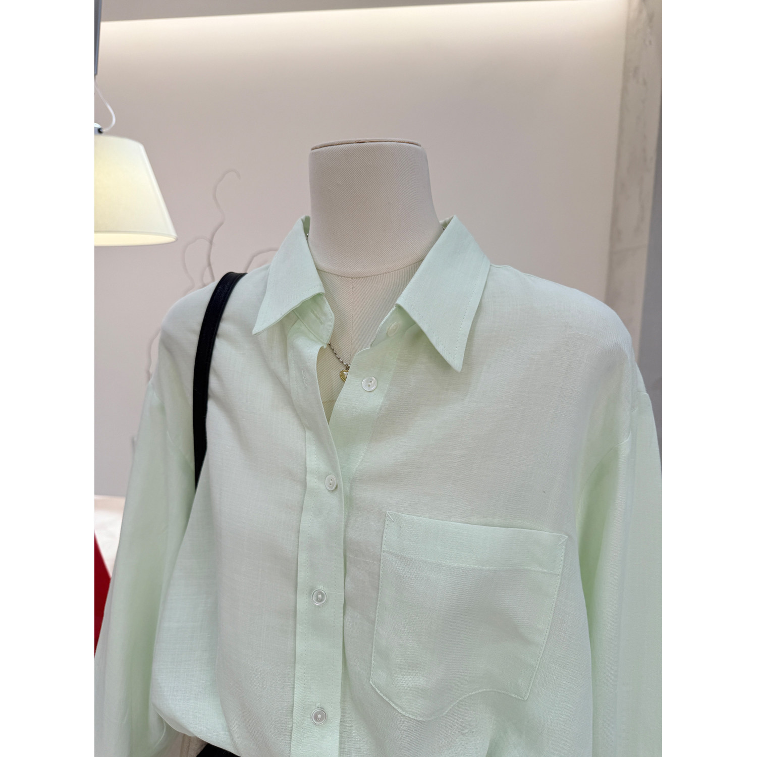 宽松百搭苎麻休闲简约通勤长袖 女春季 上衣 浅绿色polo领衬衫 小哲