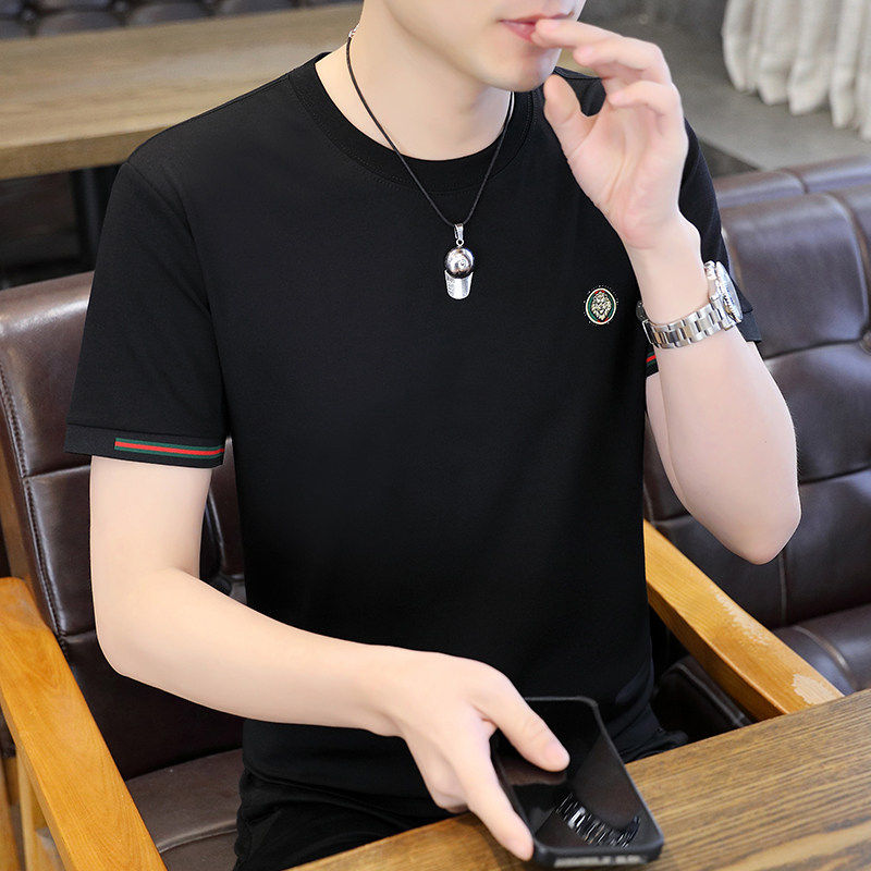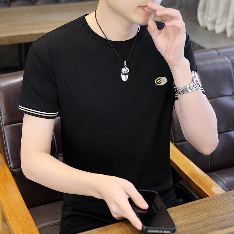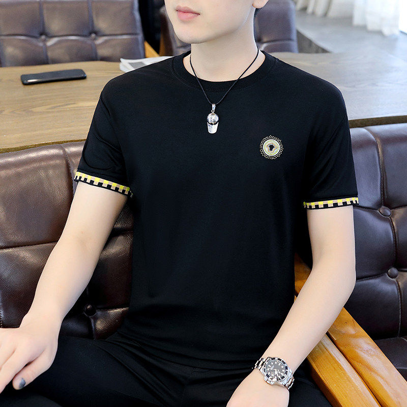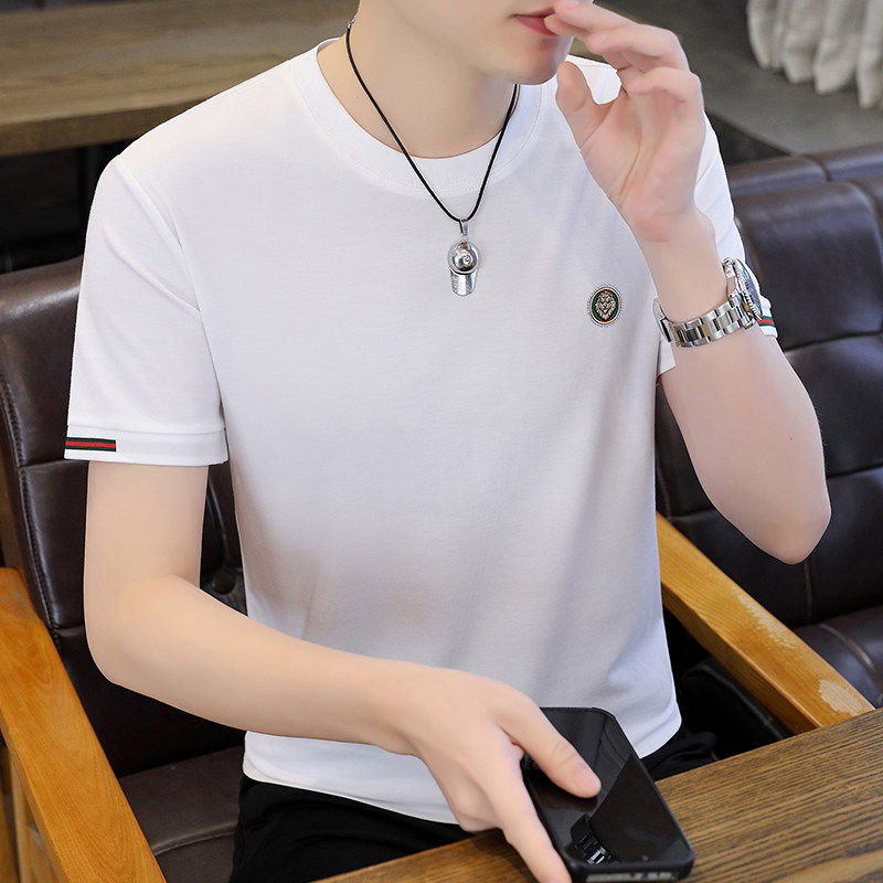 冰丝棉白色短袖 半袖 t恤男圆领修身 潮流烫钻休闲百搭男士 韩版 夏季