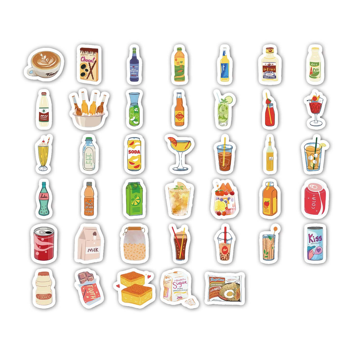40张创意爆款 饰手机笔记本保温杯平板橱窗DIY防水文创贴纸柜子 零食店零食饮料奶茶果汁趣味贴纸立体既视感装