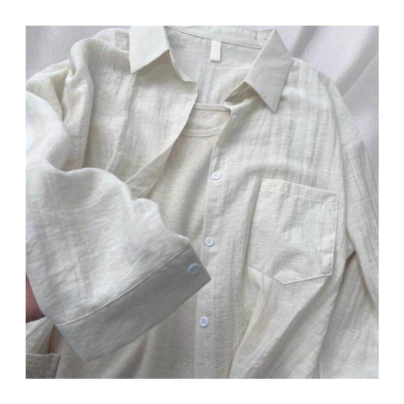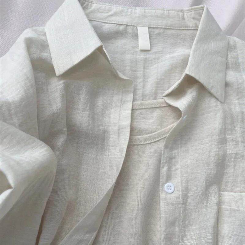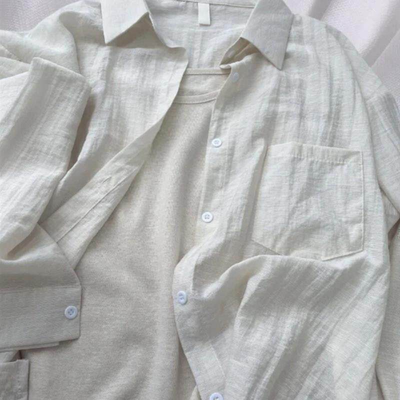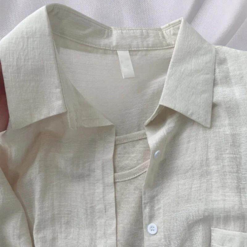 女春夏2024年休闲百搭宽松开衫 衬衫 外套防晒衬衣 胖mm亚麻长袖 大码