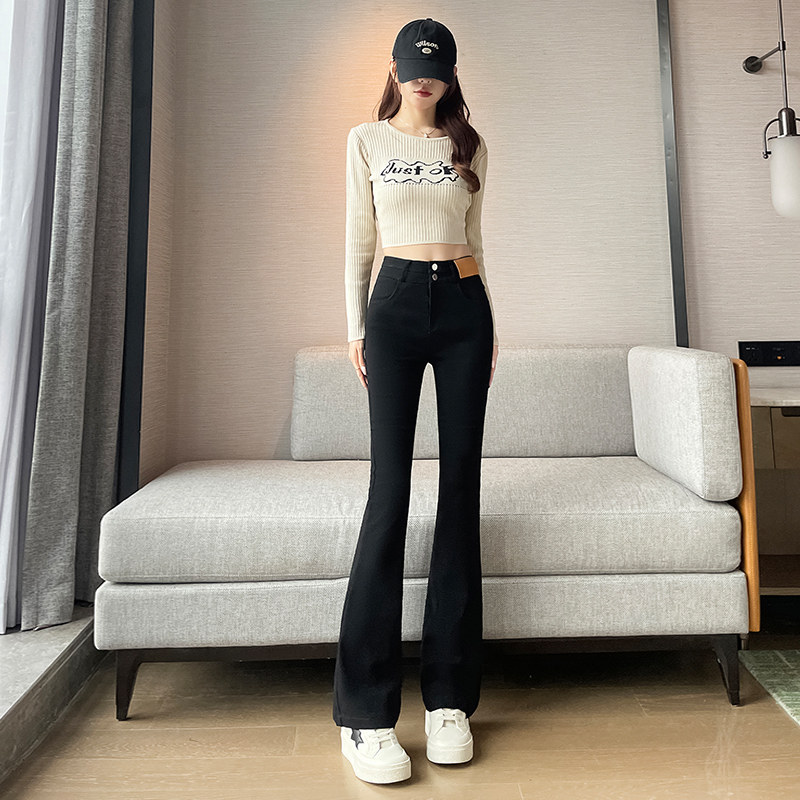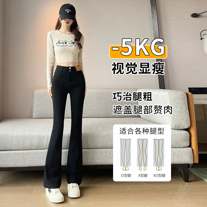 新爆款 黑色女裤 高腰弹力牛仔百搭微喇叭裤 显瘦长裤 子修身 2026春季