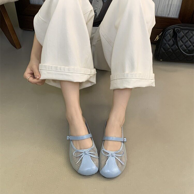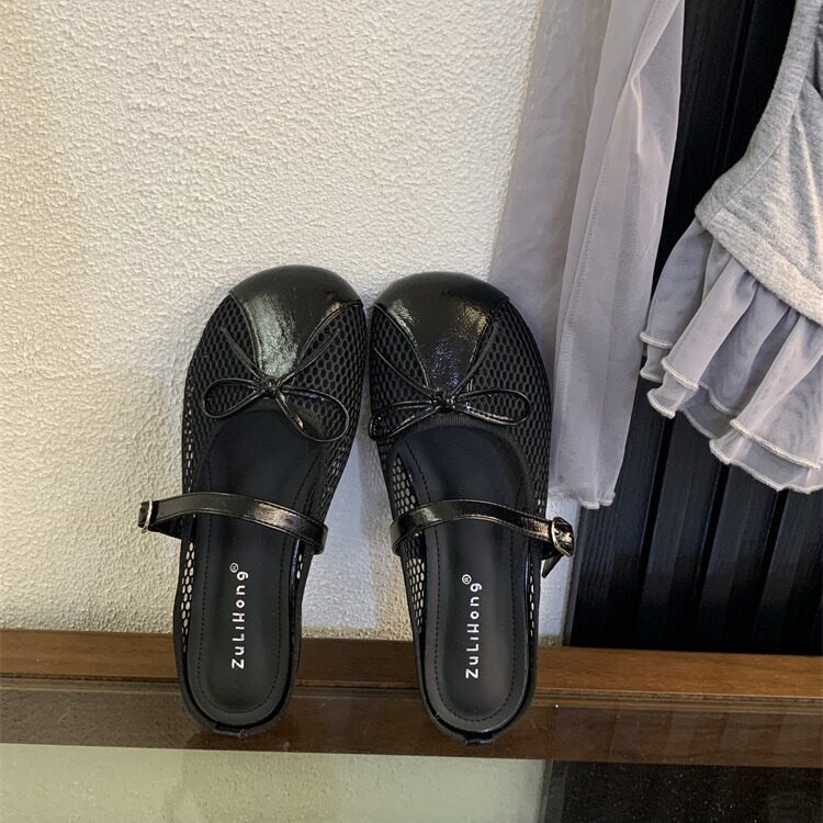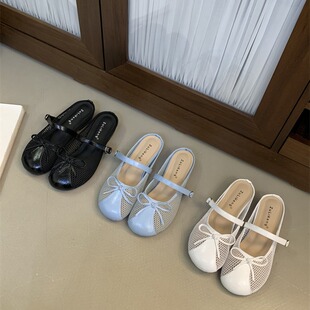 复古编织镂空渔网外穿包头拖鞋 百搭平底圆头半凉拖 女2026春夏新款