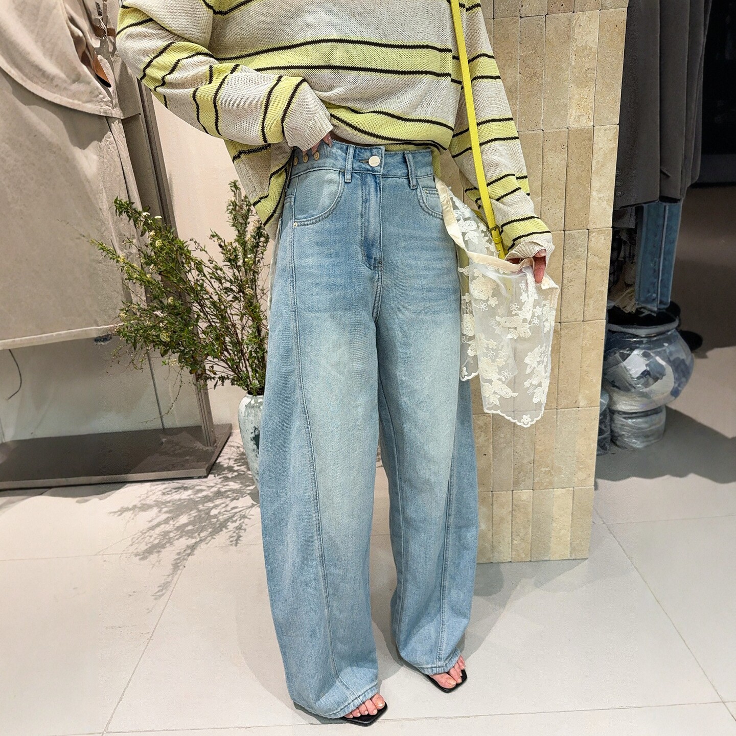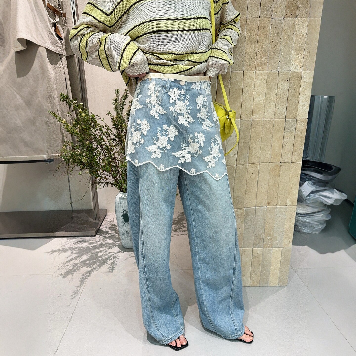 女欧洲站2026春装 裤 新款 时尚 子潮 欧货女装 蕾丝屁帘拖地阔腿牛仔裤