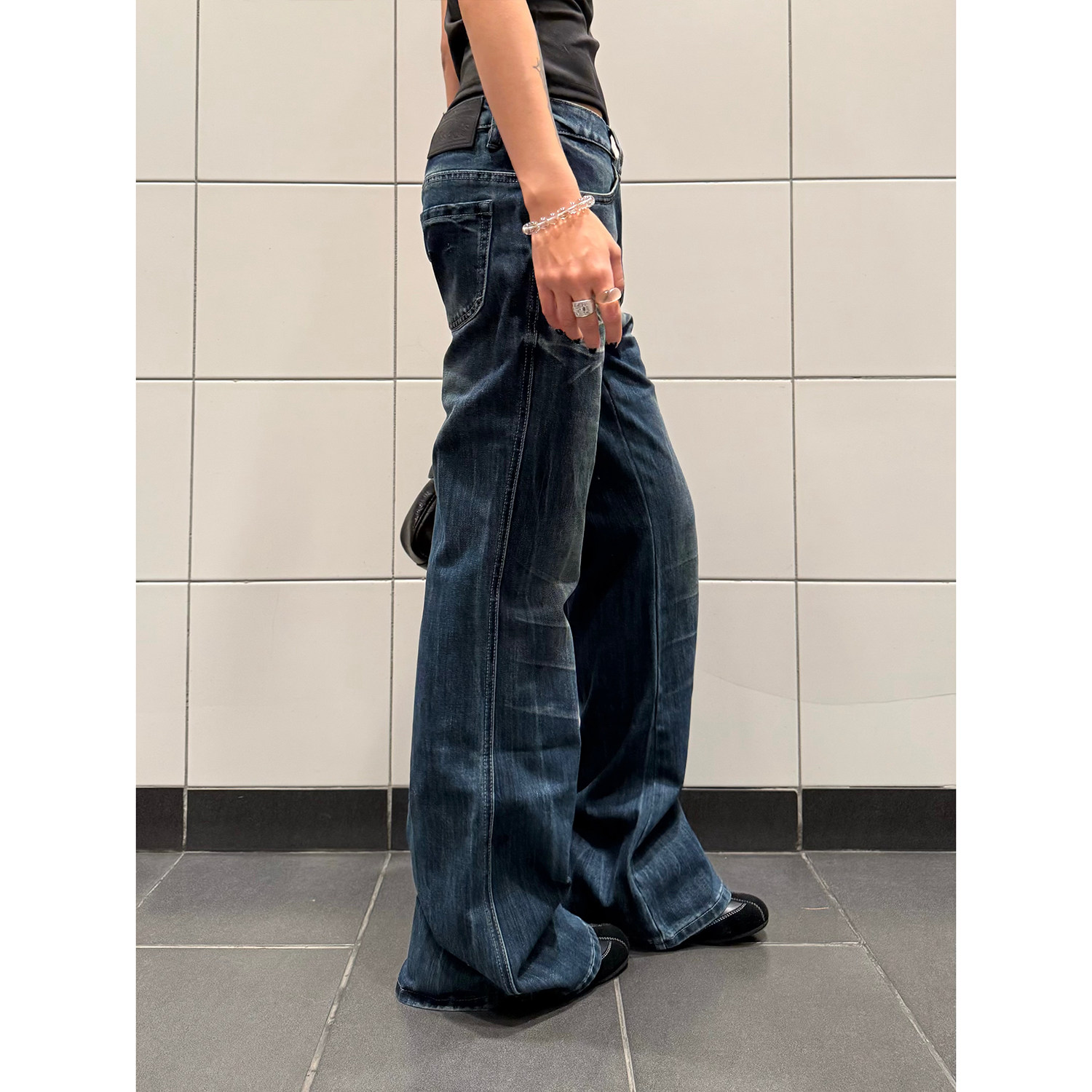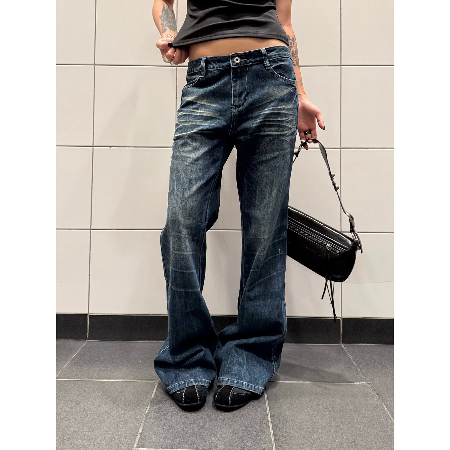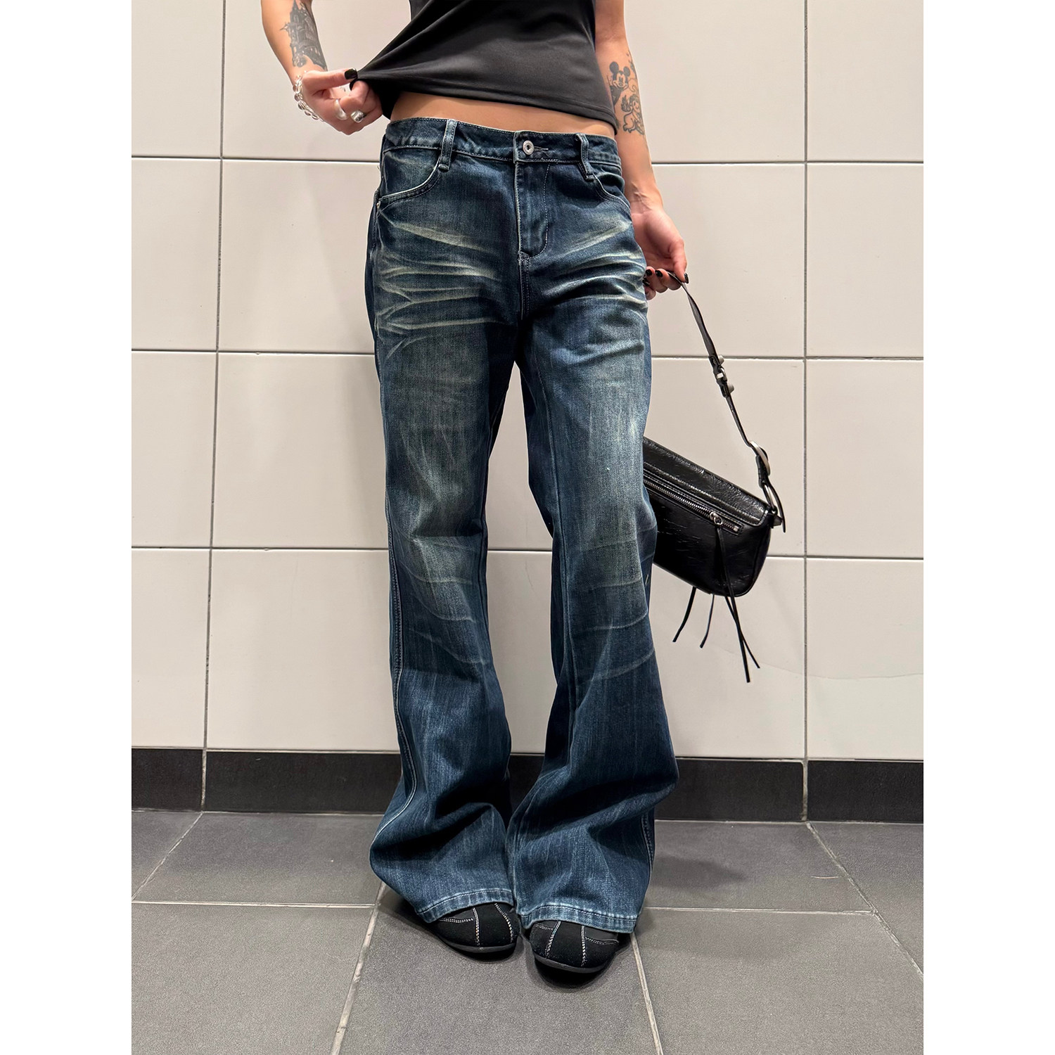百搭长裤 F383 女街头小众修身 复古辣妹设计感微喇叭牛仔裤 ins 美式