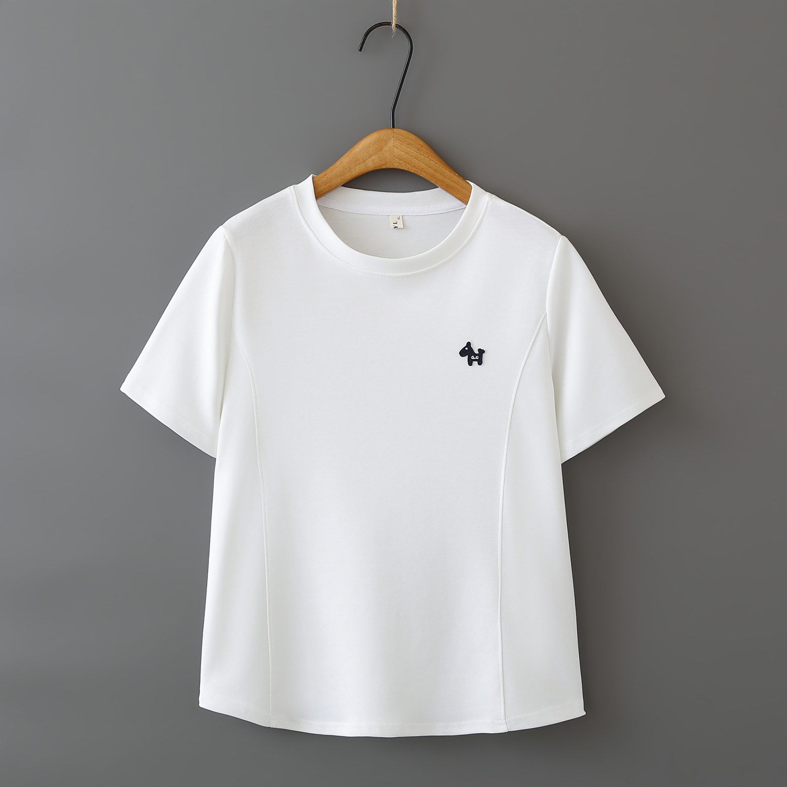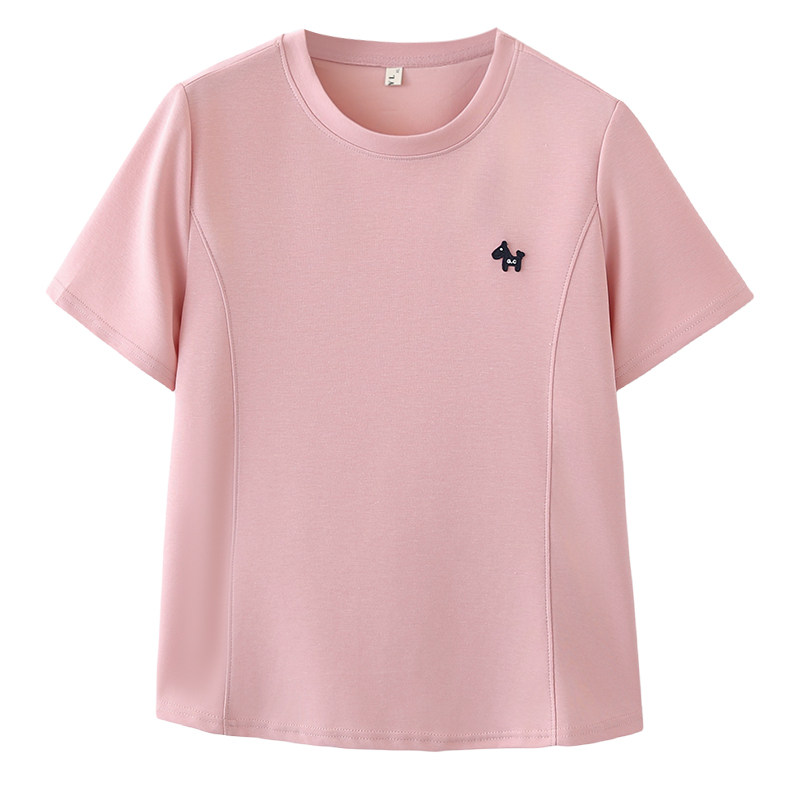 大码 基础款 体恤夏装 胖mm宽松遮肚半袖 休闲上衣 圆领小马贴标套头衫