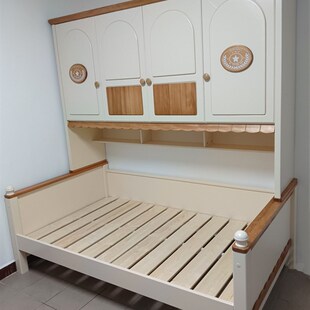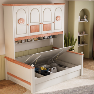 全实木儿童衣柜床一体小户型卧室套装 组合男孩女孩床头柜一体床家