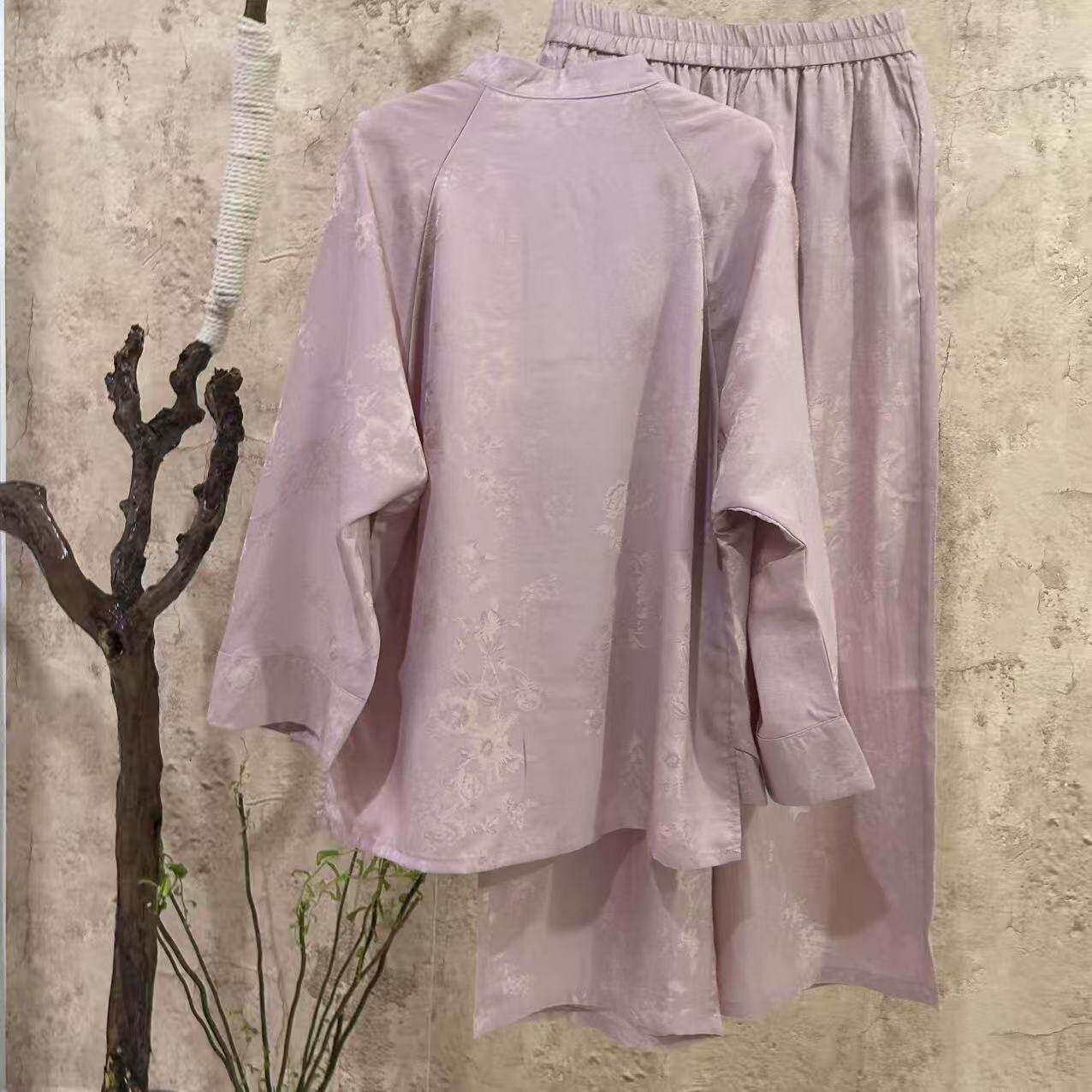 套装 裤 女两套装 新款 式 中式 落肩纸片人显瘦流苏衬衫 2026春季 时尚