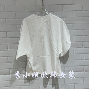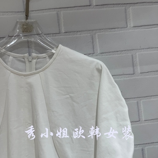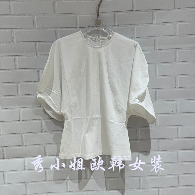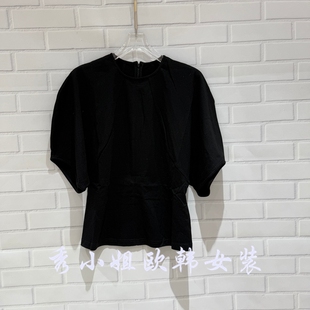显瘦潮款 欧洲站2026春季 衬衫 收腰短袖 68352 新PH23百搭圆领泡泡袖