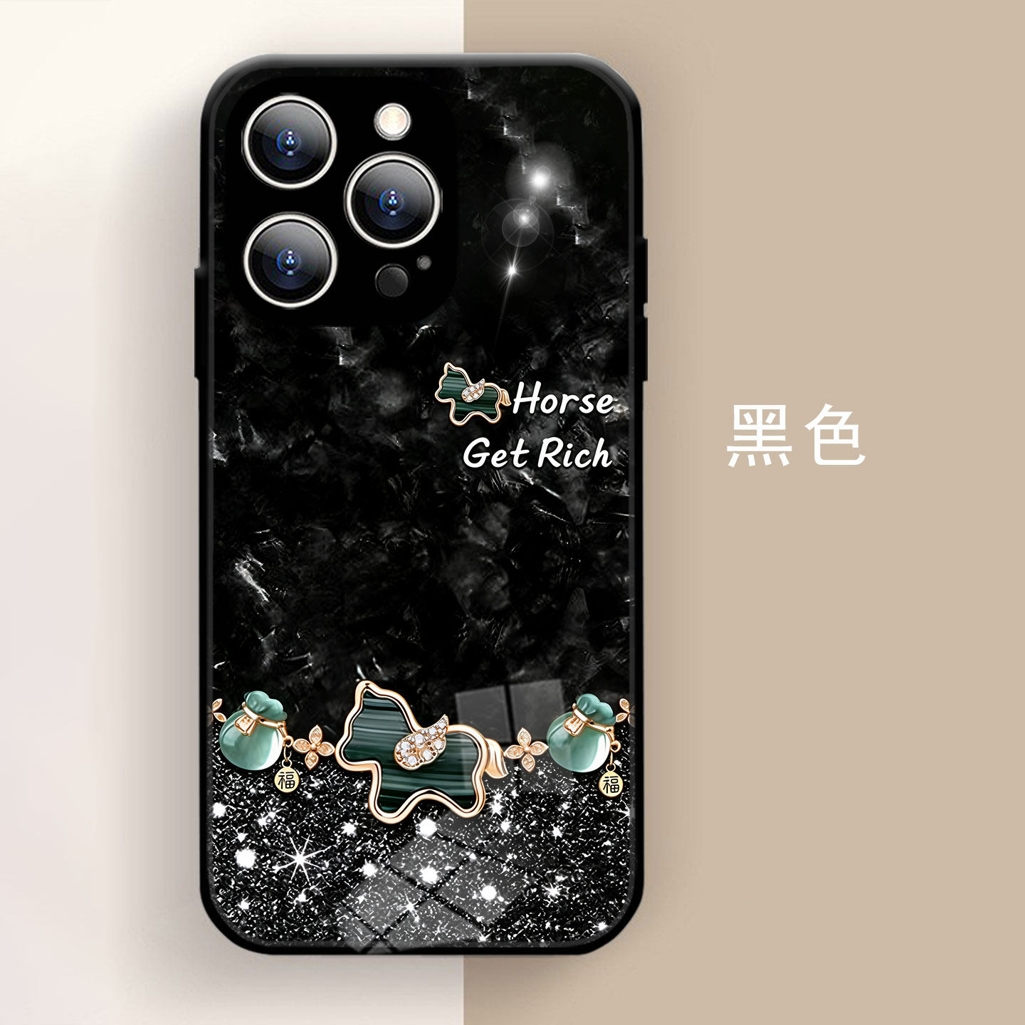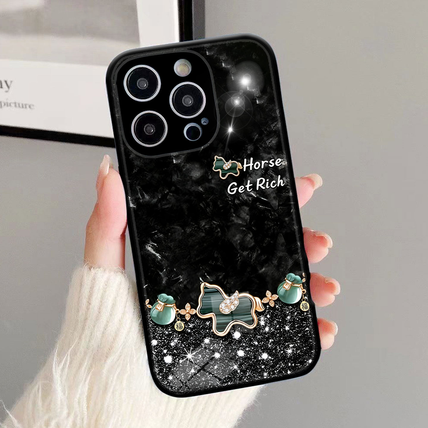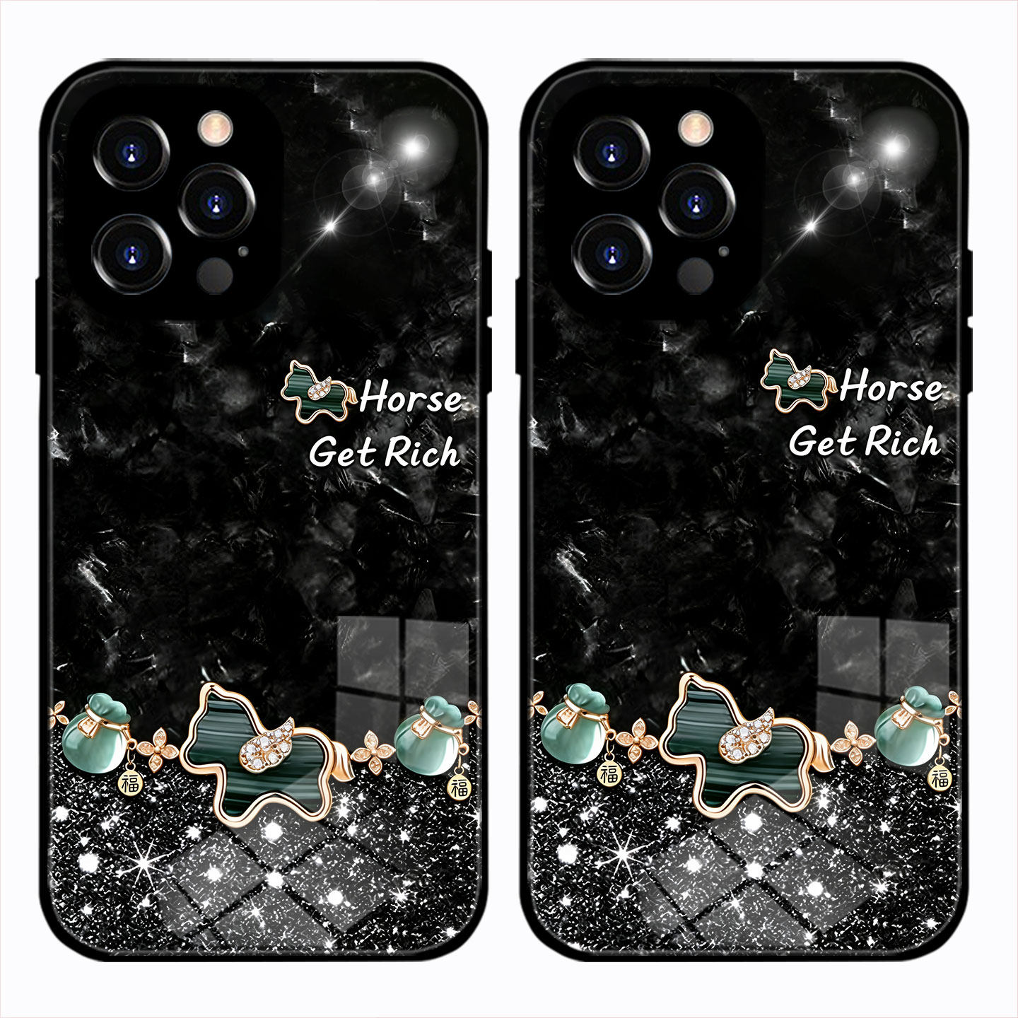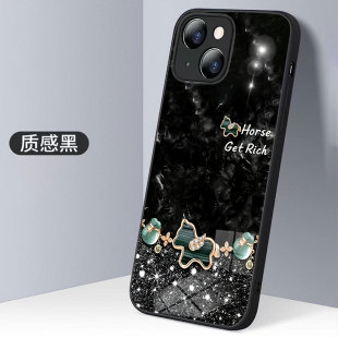 适用iphone11奢华幸运四叶草小马上发财手机壳VIVOY300Pro精致玉福袋P80红米note14苹果16Promax华为nova12se