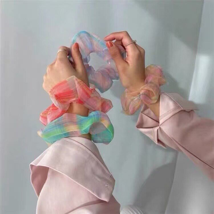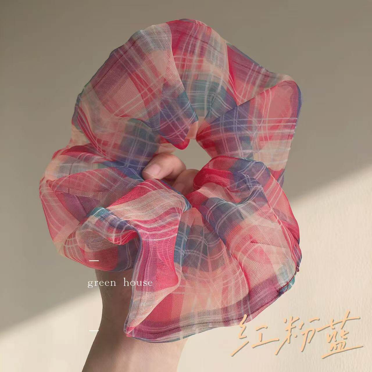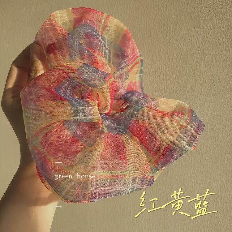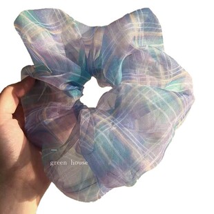法式 欧根纱格纹发圈蓬松蝴蝶结发饰女士气质头绳婚礼约会跨境热卖