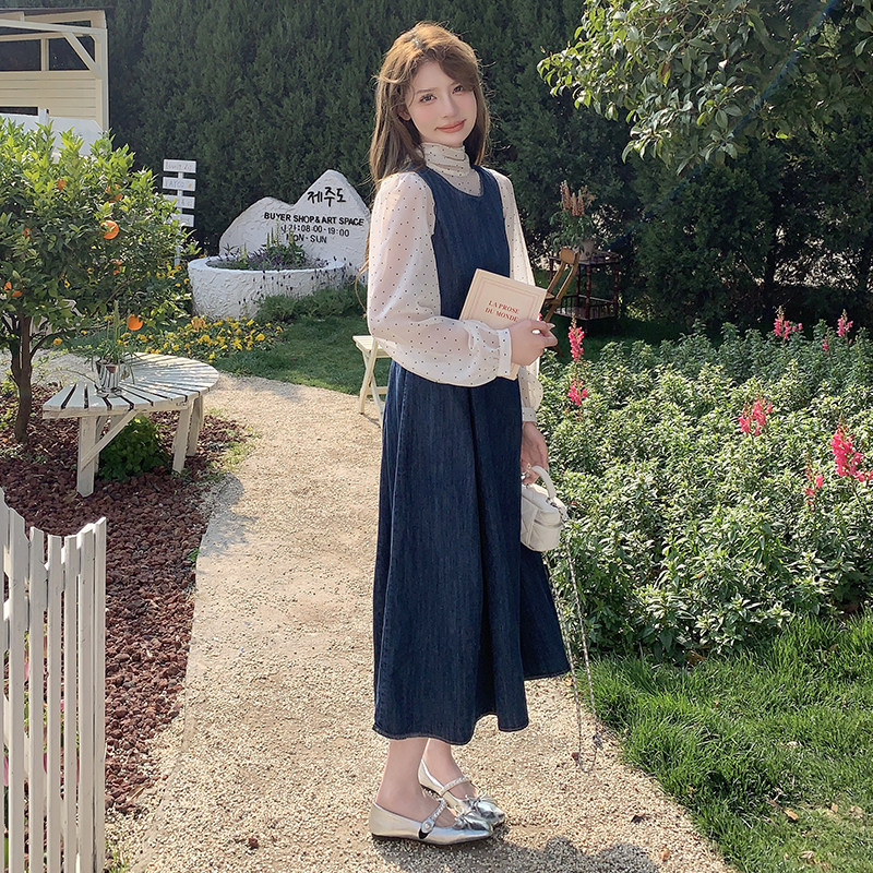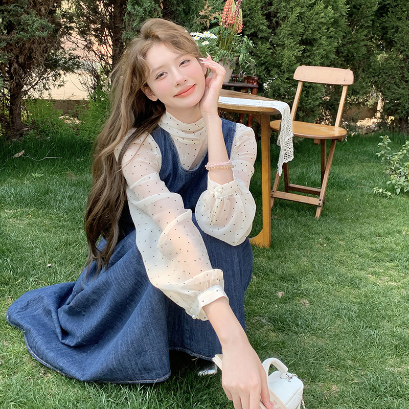 2325 波点上衣牛仔连衣裙两件套装 P165控238 春夏新款 大货已出