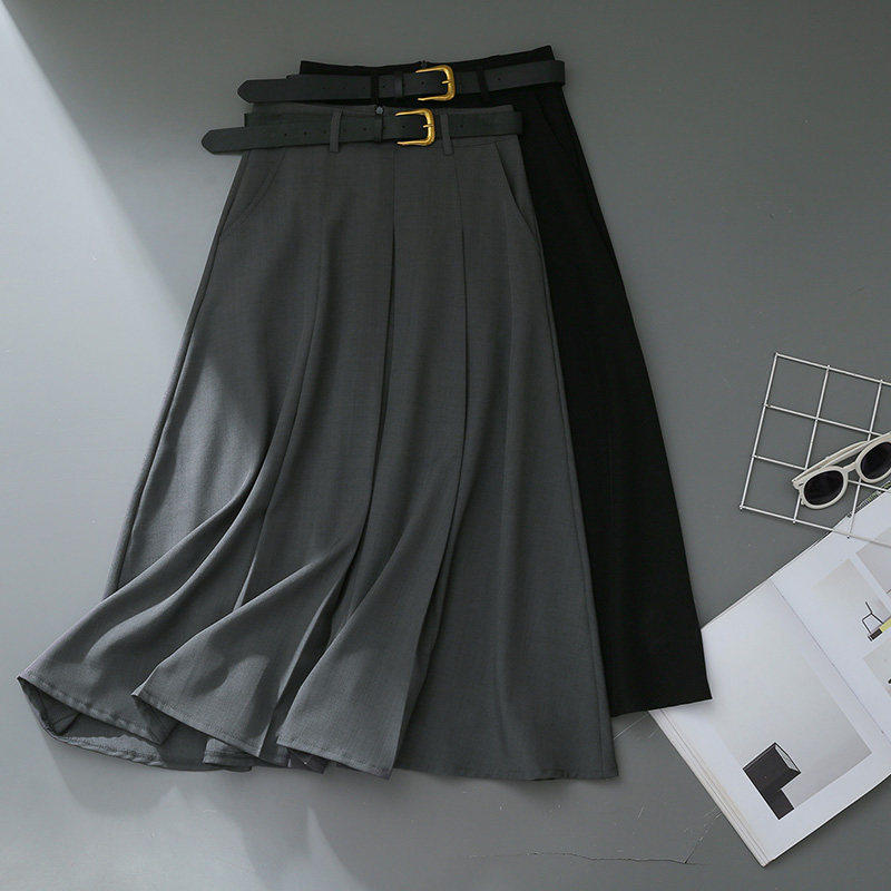 通勤韩版 高腰显瘦西装 2025春秋新款 半身裙女装 a字百褶伞裙 中长版