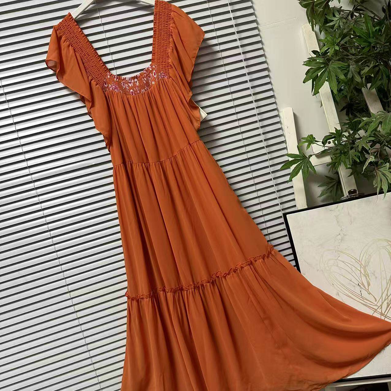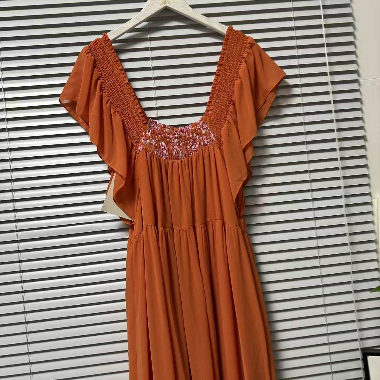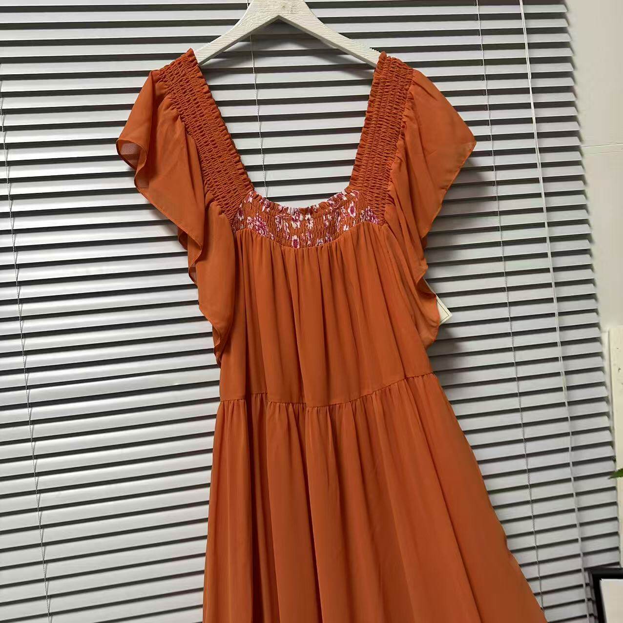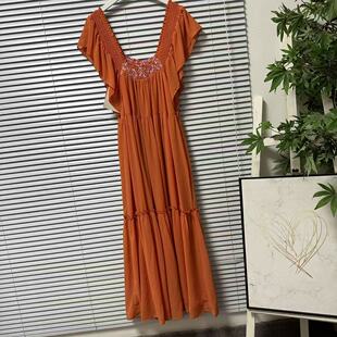 度假风长裙 收腰连衣裙女装 0325 15法国单雪纺方领荷叶边中长款