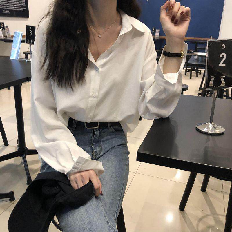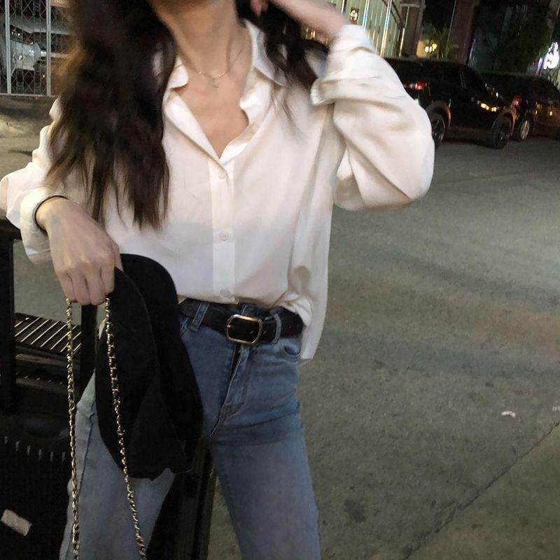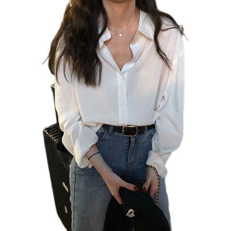 宽松百搭垂感衬衣职业装 长袖 韩版 女春上衣新款 纯色衬衫