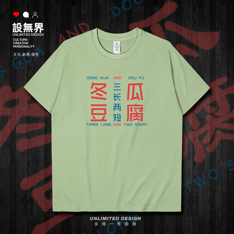 粤语冬瓜豆腐三长两短广东白话创意纯棉短袖 无界 T恤男女夏定制设