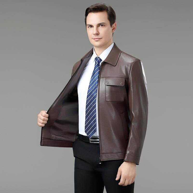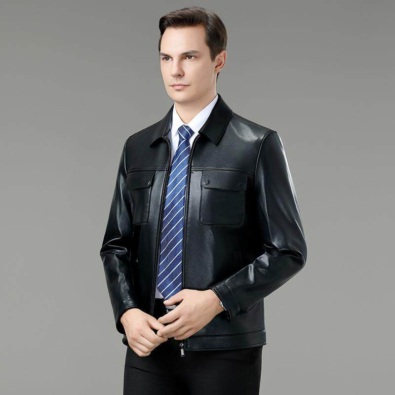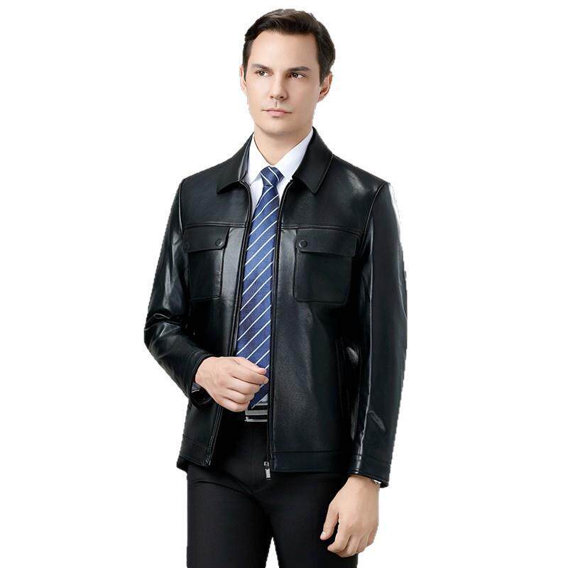 BB高端皮夹克爸 羊衣外套男皮百搭休闲9258 秋冬雷总同款 领翻绵季