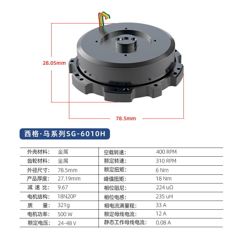 关节减速电机西格马SG 内置行星齿轮箱人形机器人关节电机 6010H