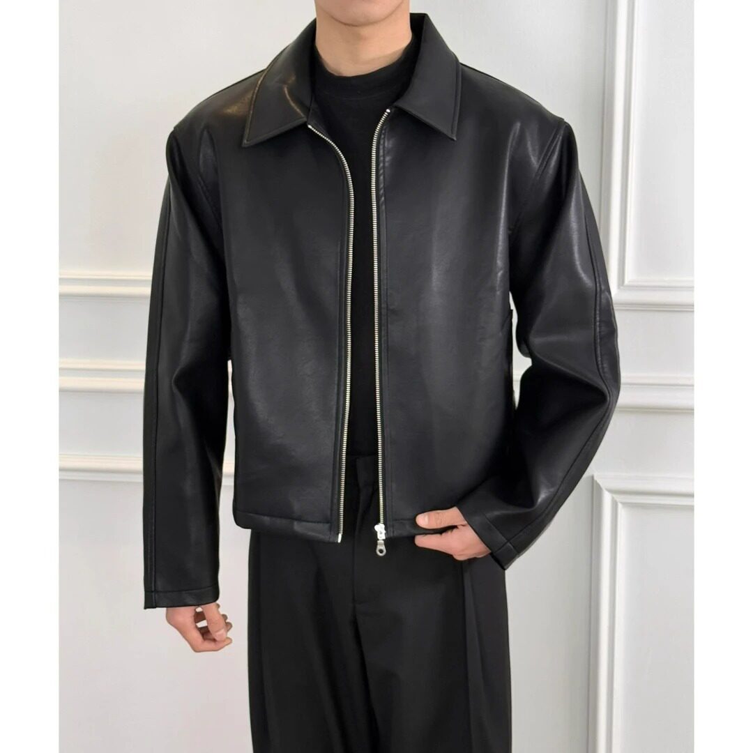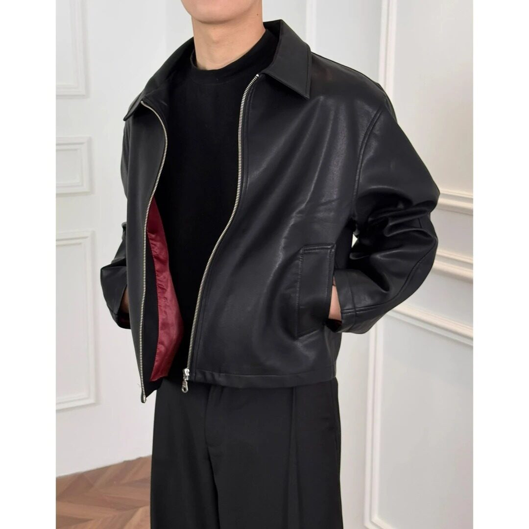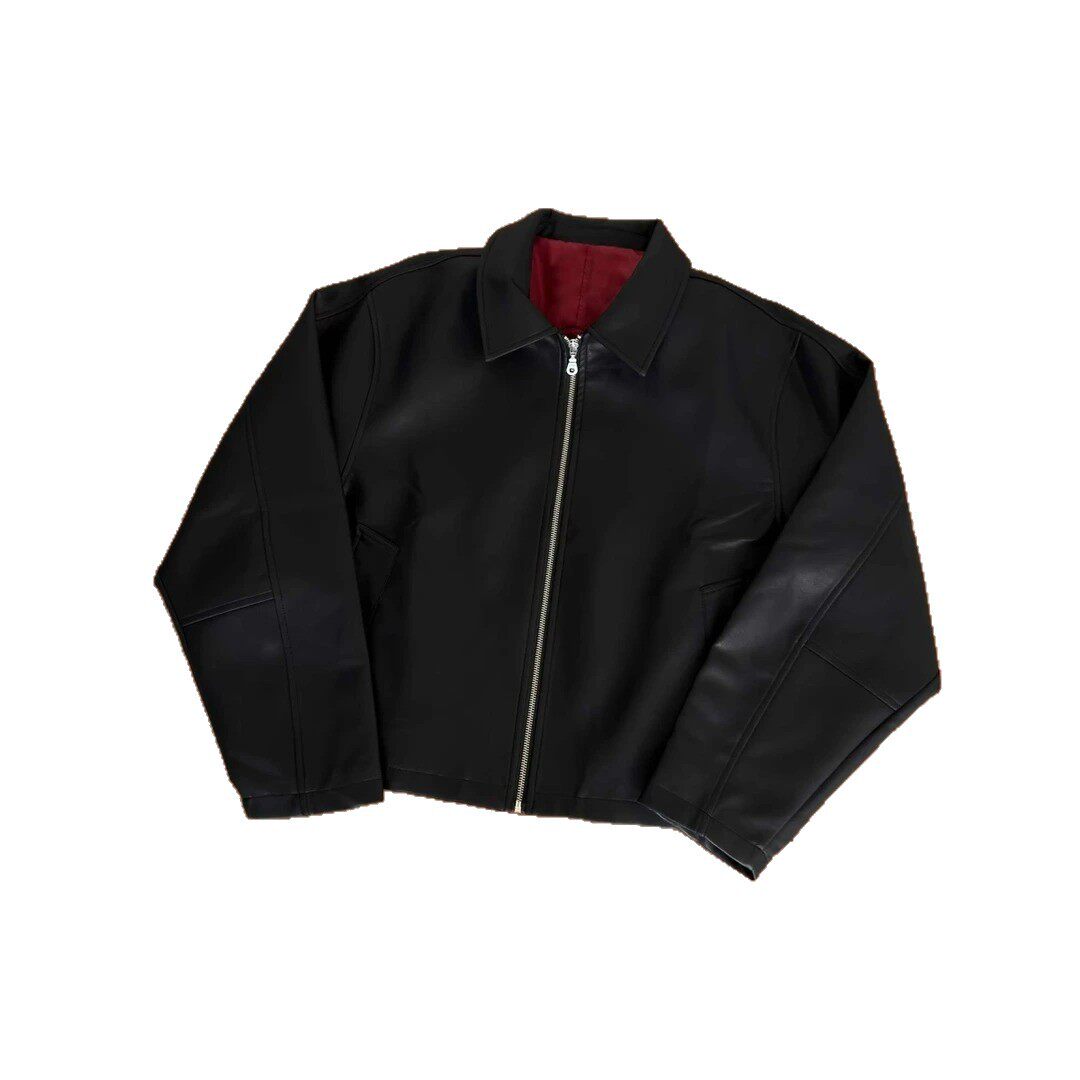 美式 pu皮夹克 复古高级感Cleanfit短宽可拉红内里皮衣外套男春秋季