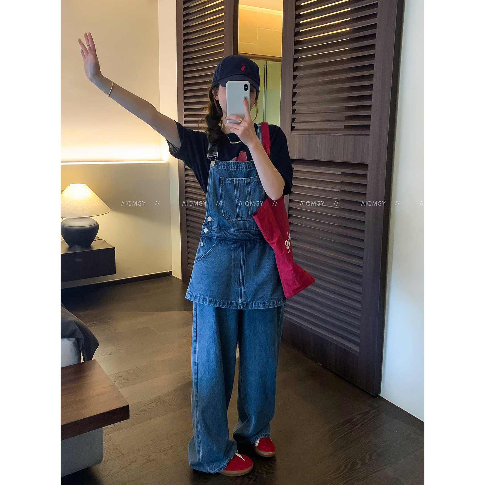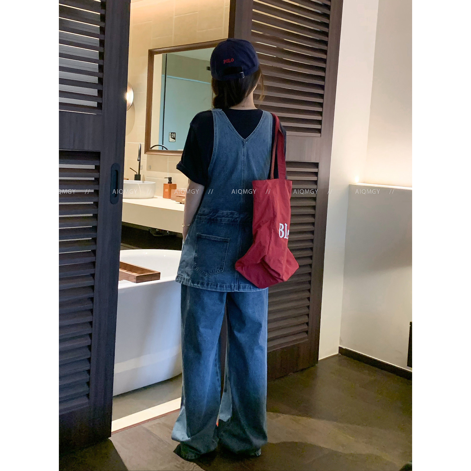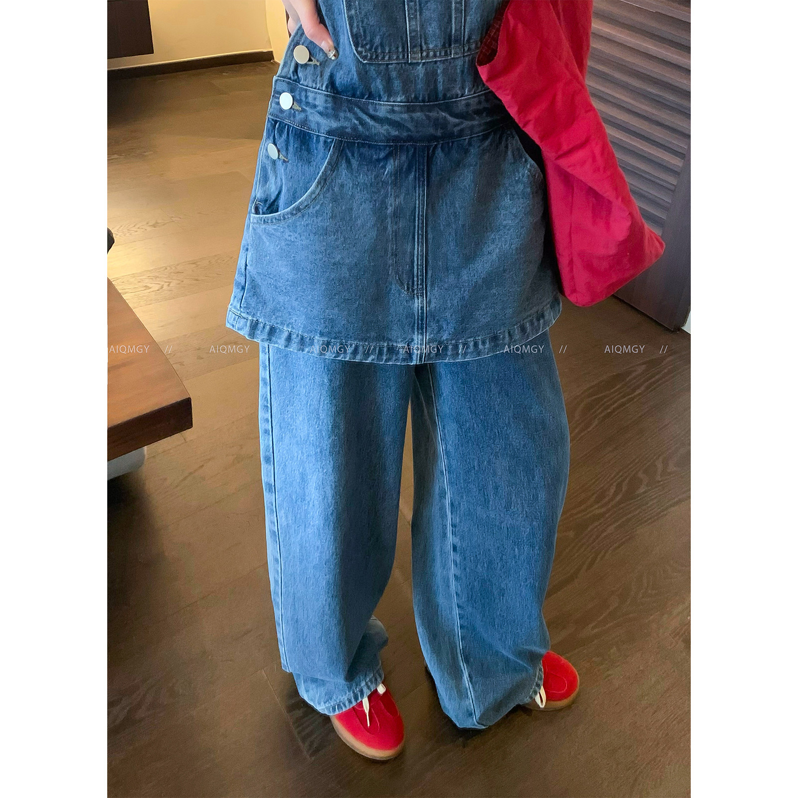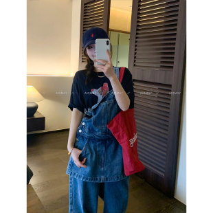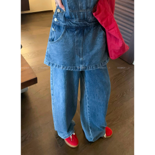 蓝色牛仔背带裤 通勤阔腿长裤 女2026春季 韩系时尚 新款 爱情魔鬼鱼
