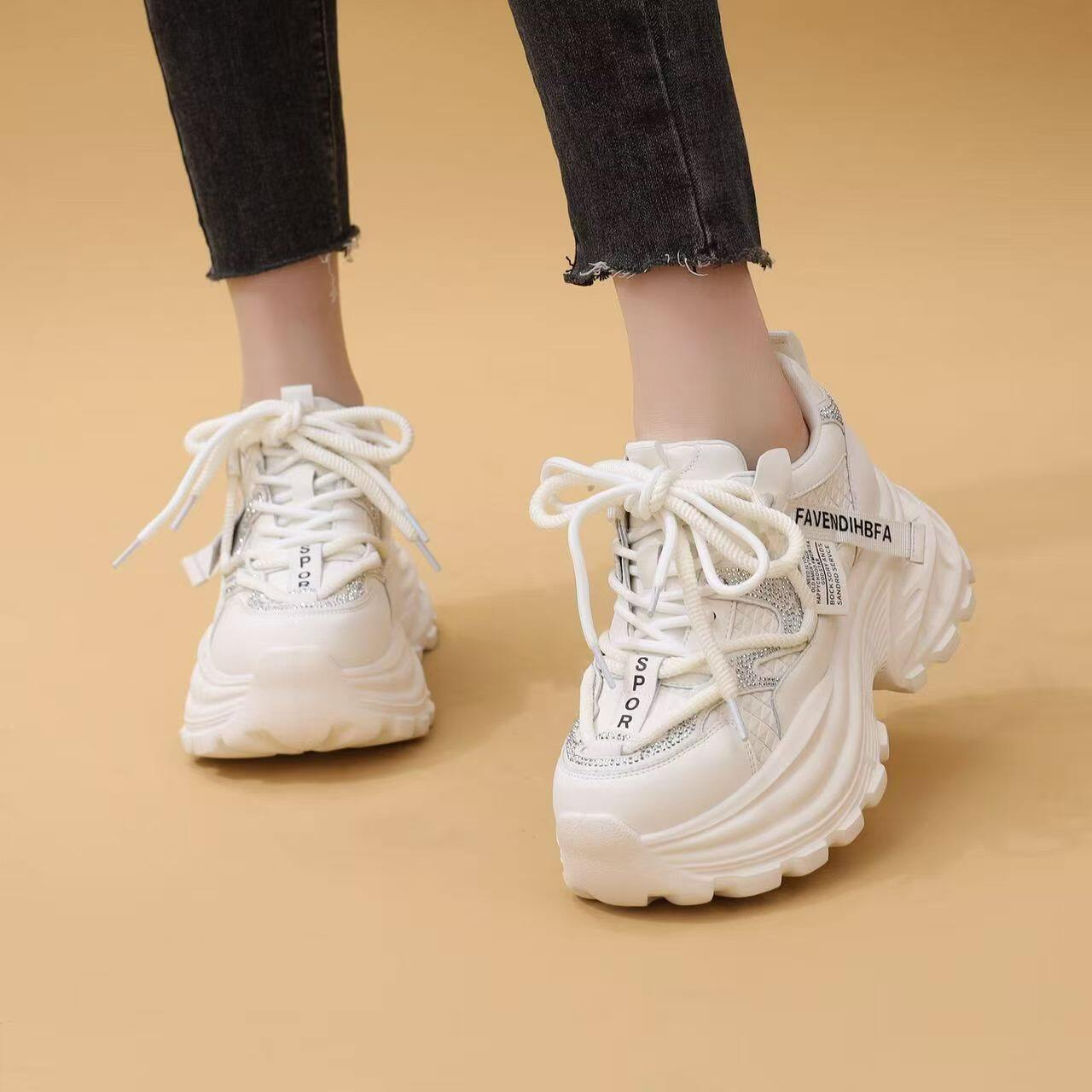 小个子显高小白鞋 女隐形增高7cm春夏新款 透气厚底百搭老爹鞋 时尚