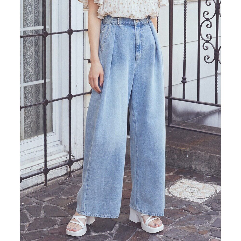 宽松立体剪裁花型印花牛仔裤 女士 music&ecology 日本直邮earth