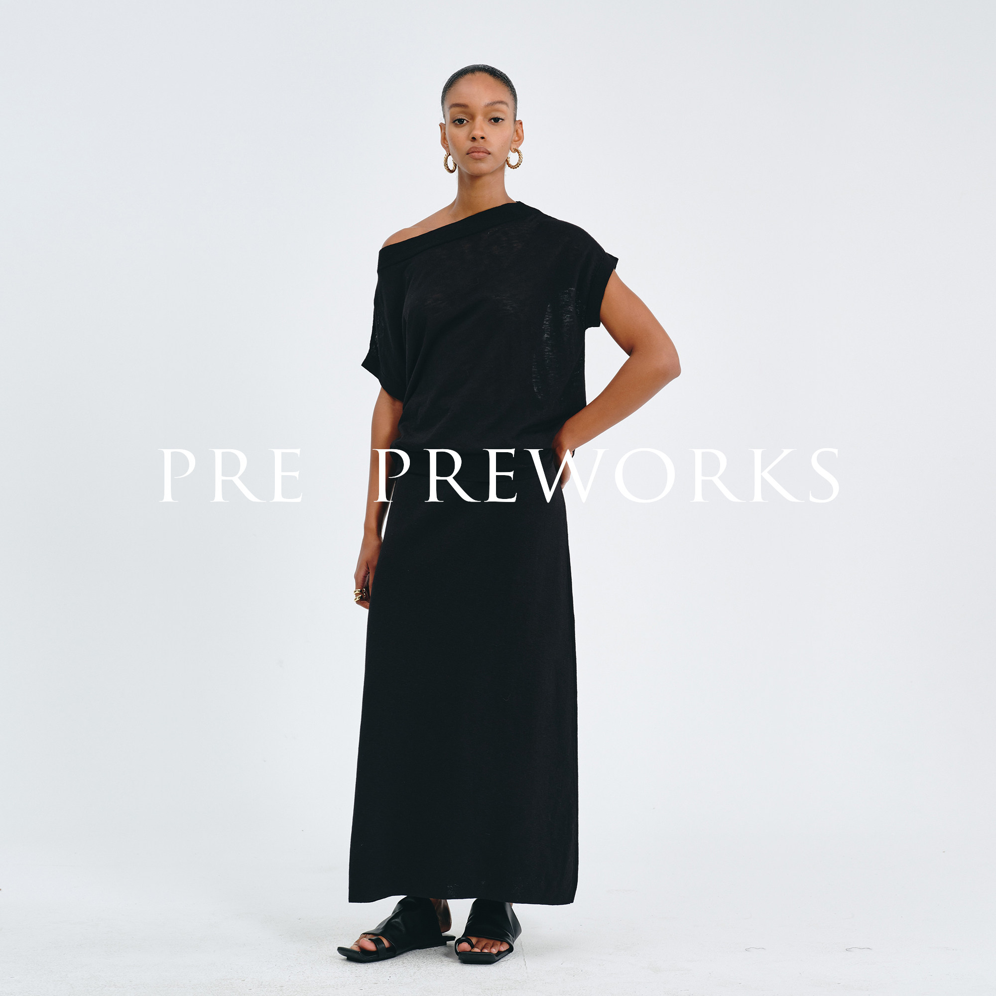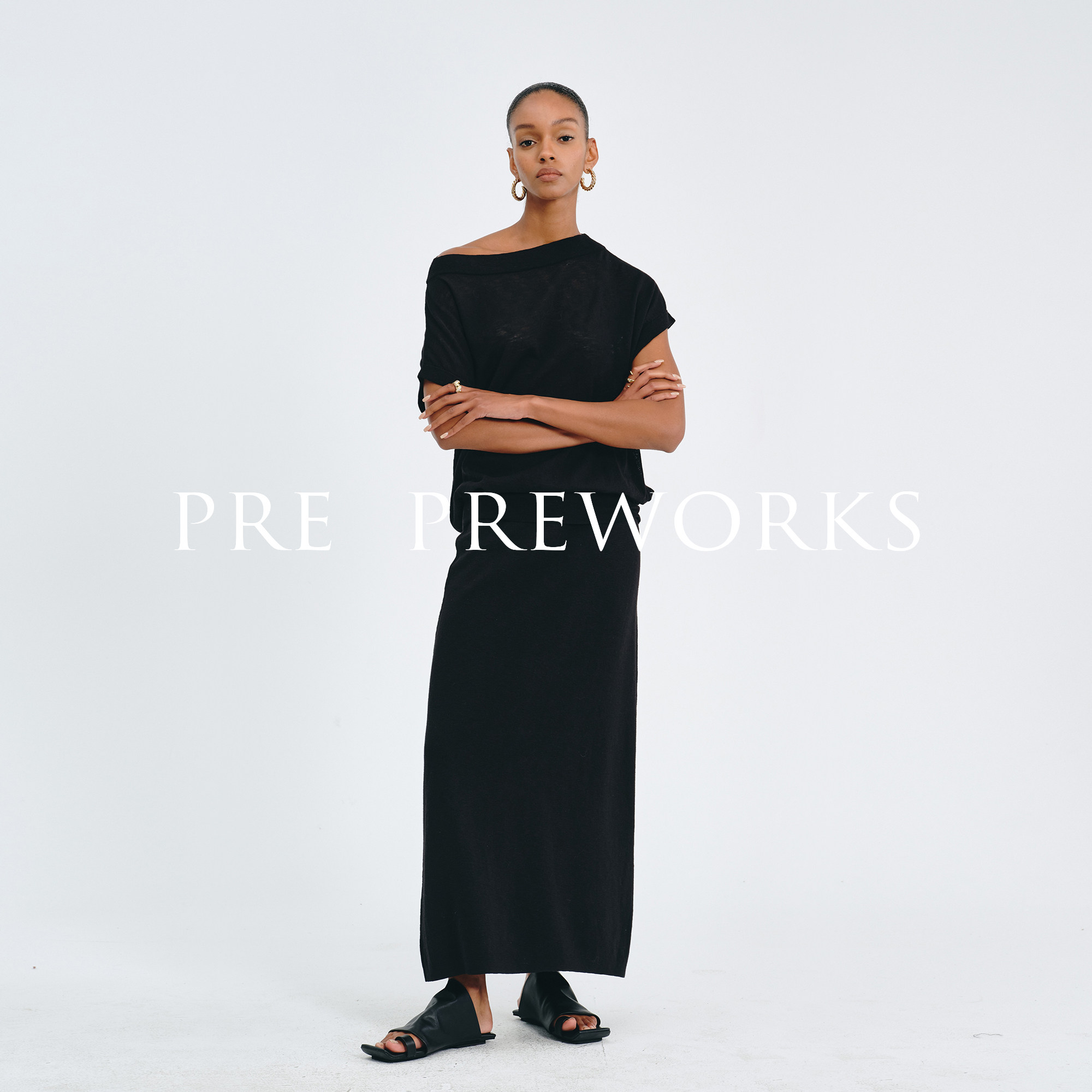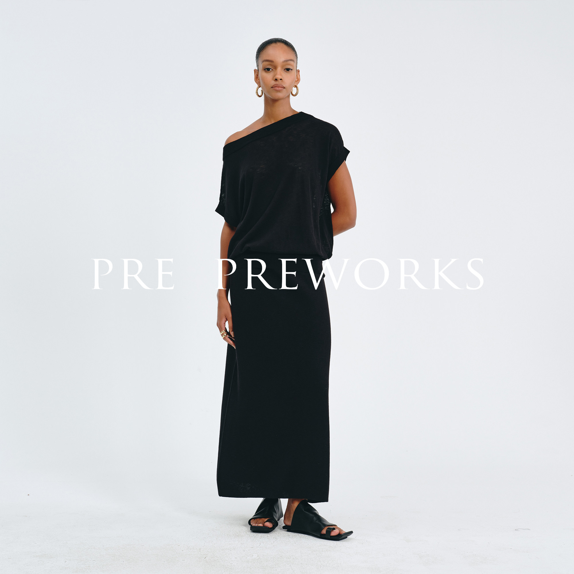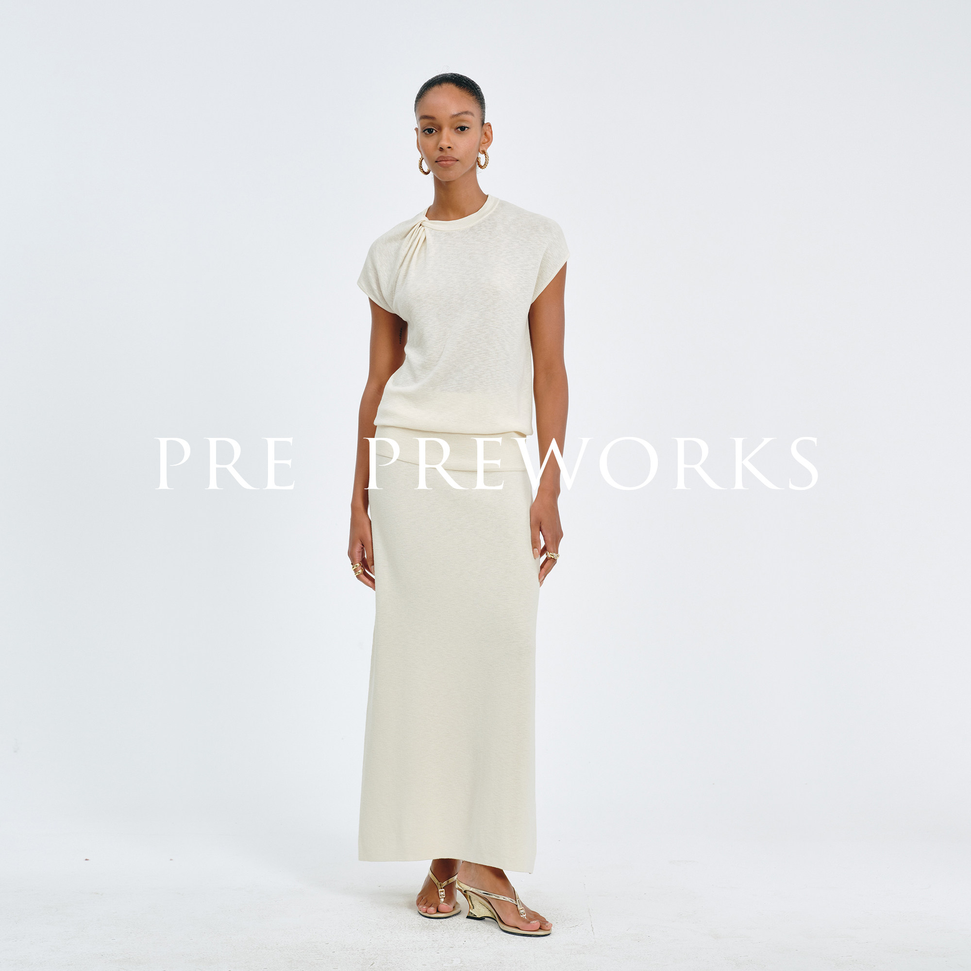 PRE PREWORKS极简松弛凉感棉麻混纺高腰针织半身裙