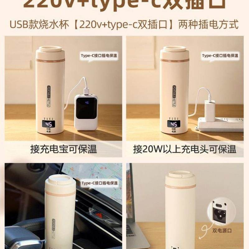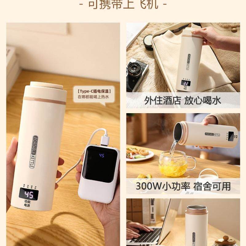 便携式 烧水壶保温旅行烧水杯宿舍热水壶电热杯充电电加热