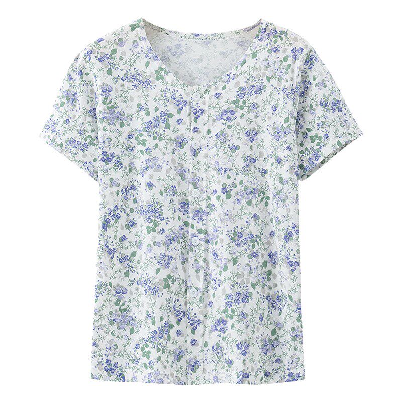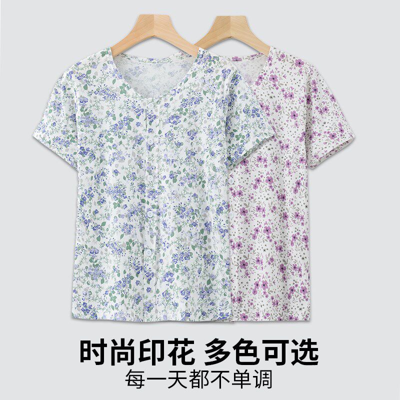 夏季 新款 夏装 中老年人短袖 家居服薄款 中老年妈妈纯棉睡衣上衣女款