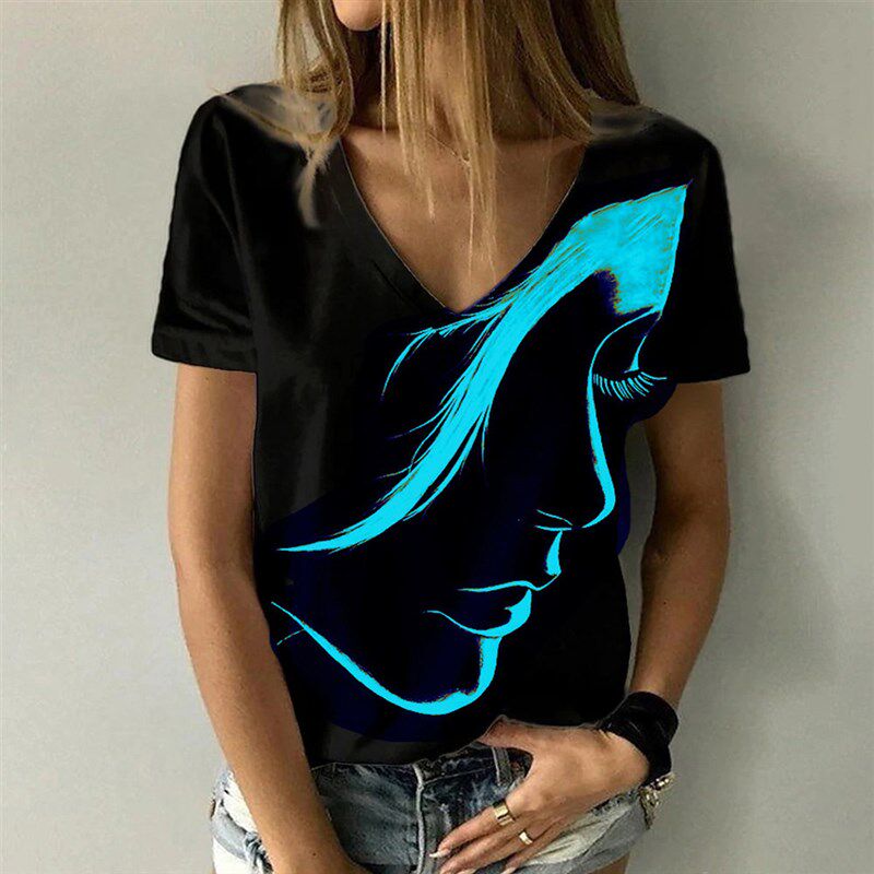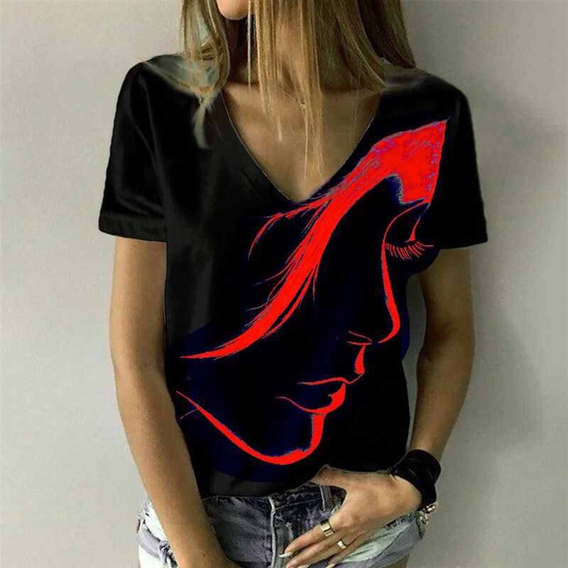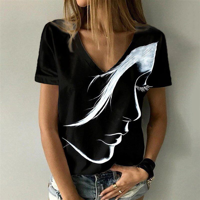 Theme New Sleeve Short Print Face Retro Fashion Womens
