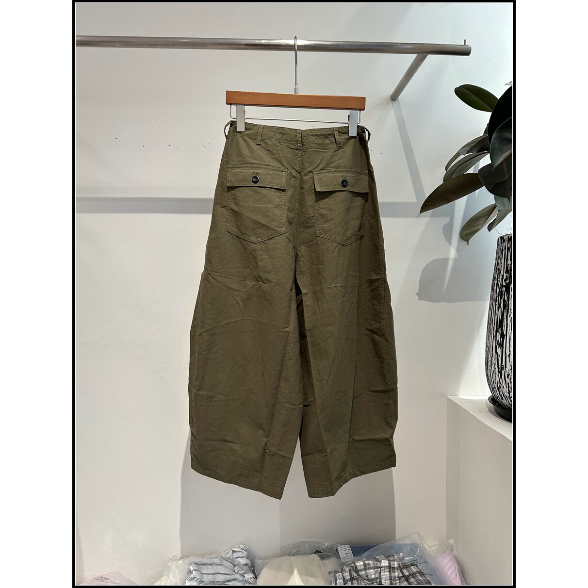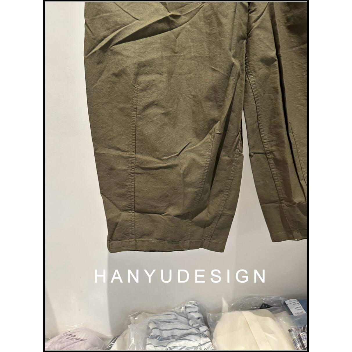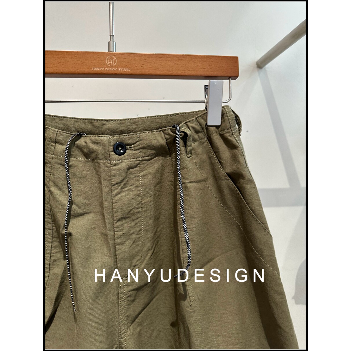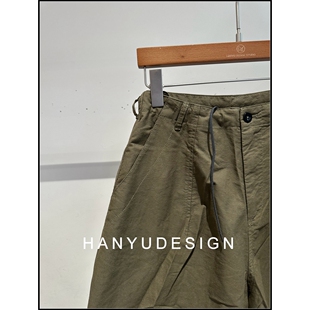 中性休闲风纯棉军绿色阔腿裤 26早春新款 女 韩钰DESIGN