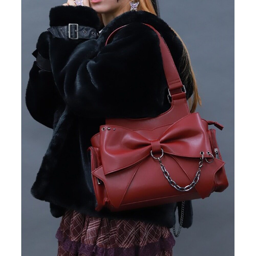 赵露思同款 南风Chio2nd霓虹甜心托特包包女红色帆布包通勤单肩包