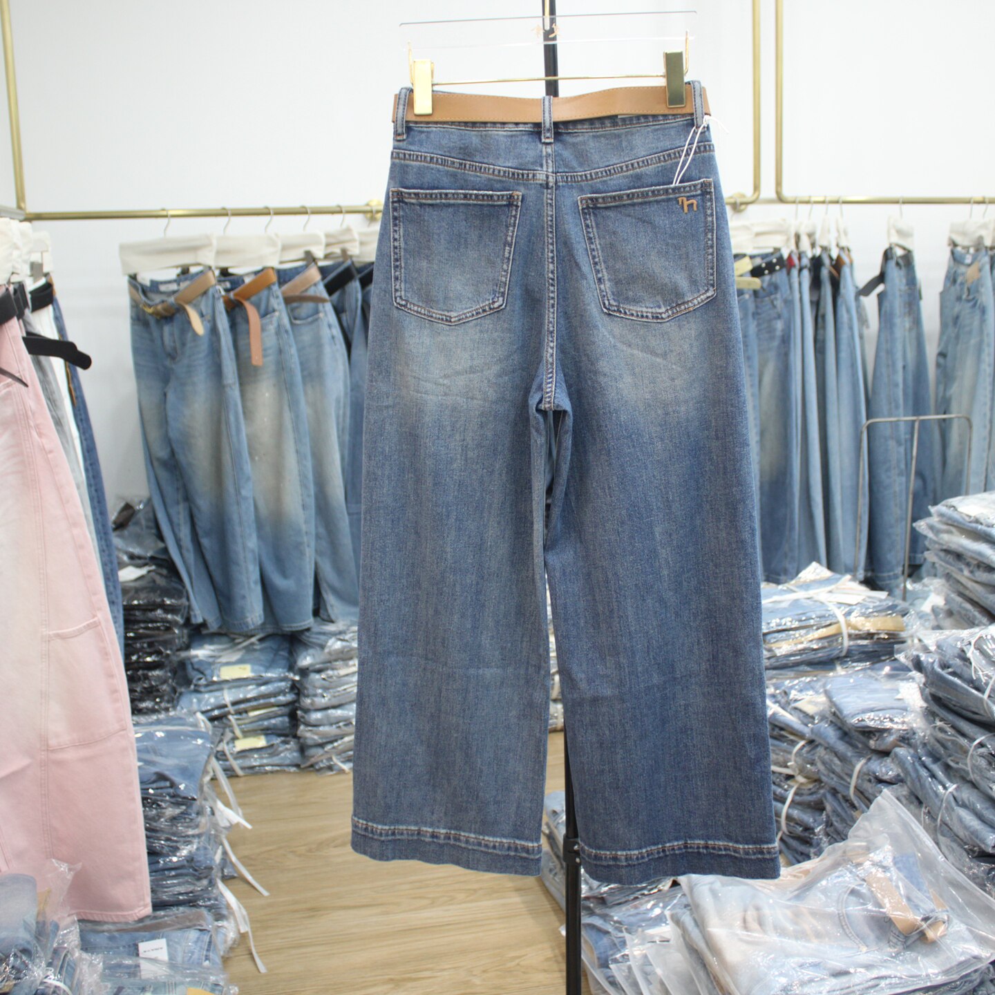 显瘦阔腿七分裤 女装 2026年夏季 艾拿58013蓝色水洗宽松直筒牛仔裤