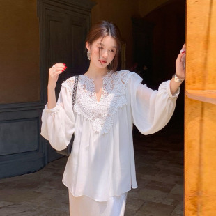 本再生纤维甜系氛围感V领蕾丝雪纺衫 早春双版 巴黎甜心 新 AHY