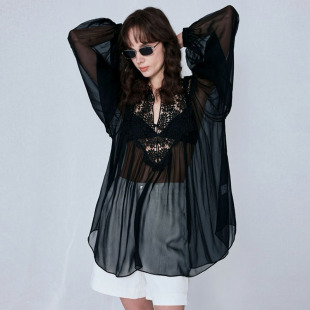 雪纺女装 衬衫 喇叭袖 长袖 内搭 哥特lolita蕾丝华丽大姬袖 原创