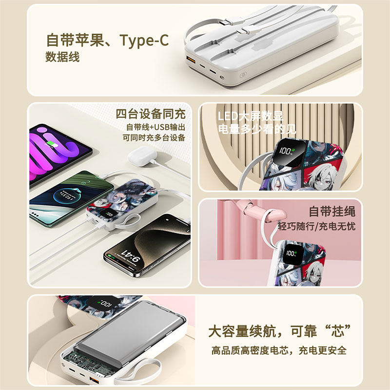 阿蕾奇诺充电宝20000毫安移动电源10000快充动漫周边LOGO定制图案