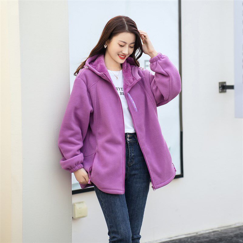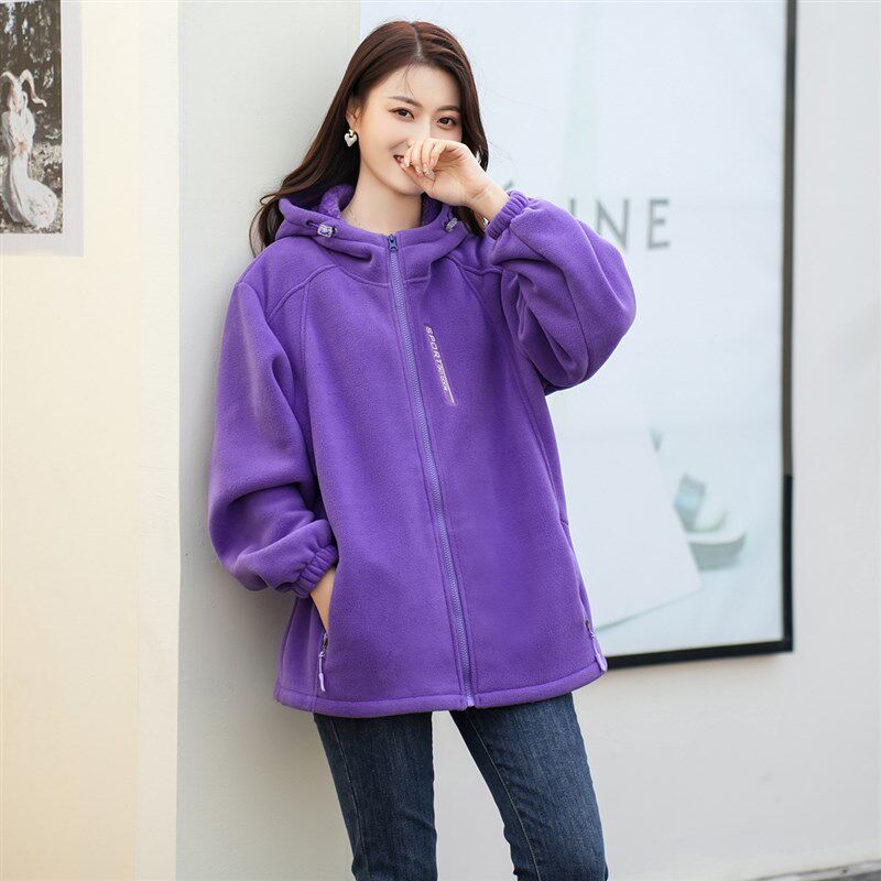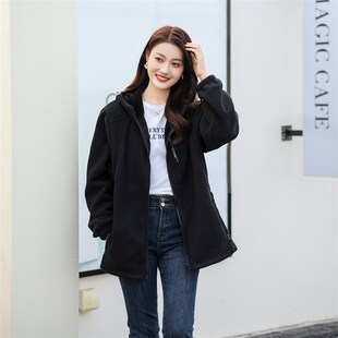 摇粒绒保暖卫衣大码 女200斤秋冬抓绒衣加绒连帽冲锋衣内胆