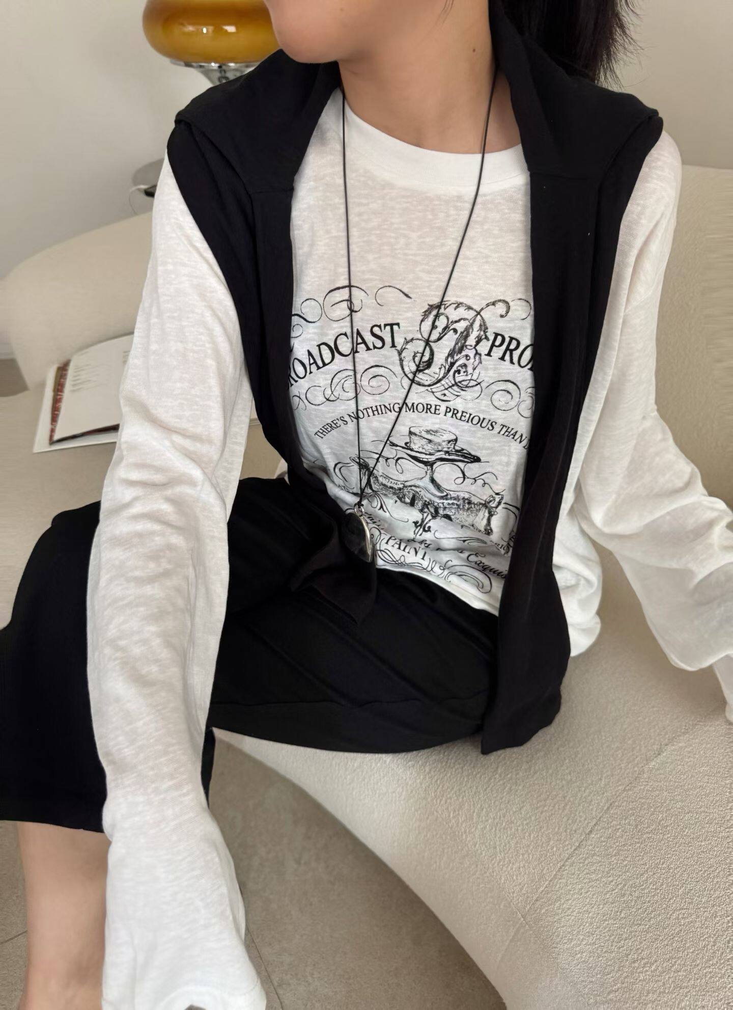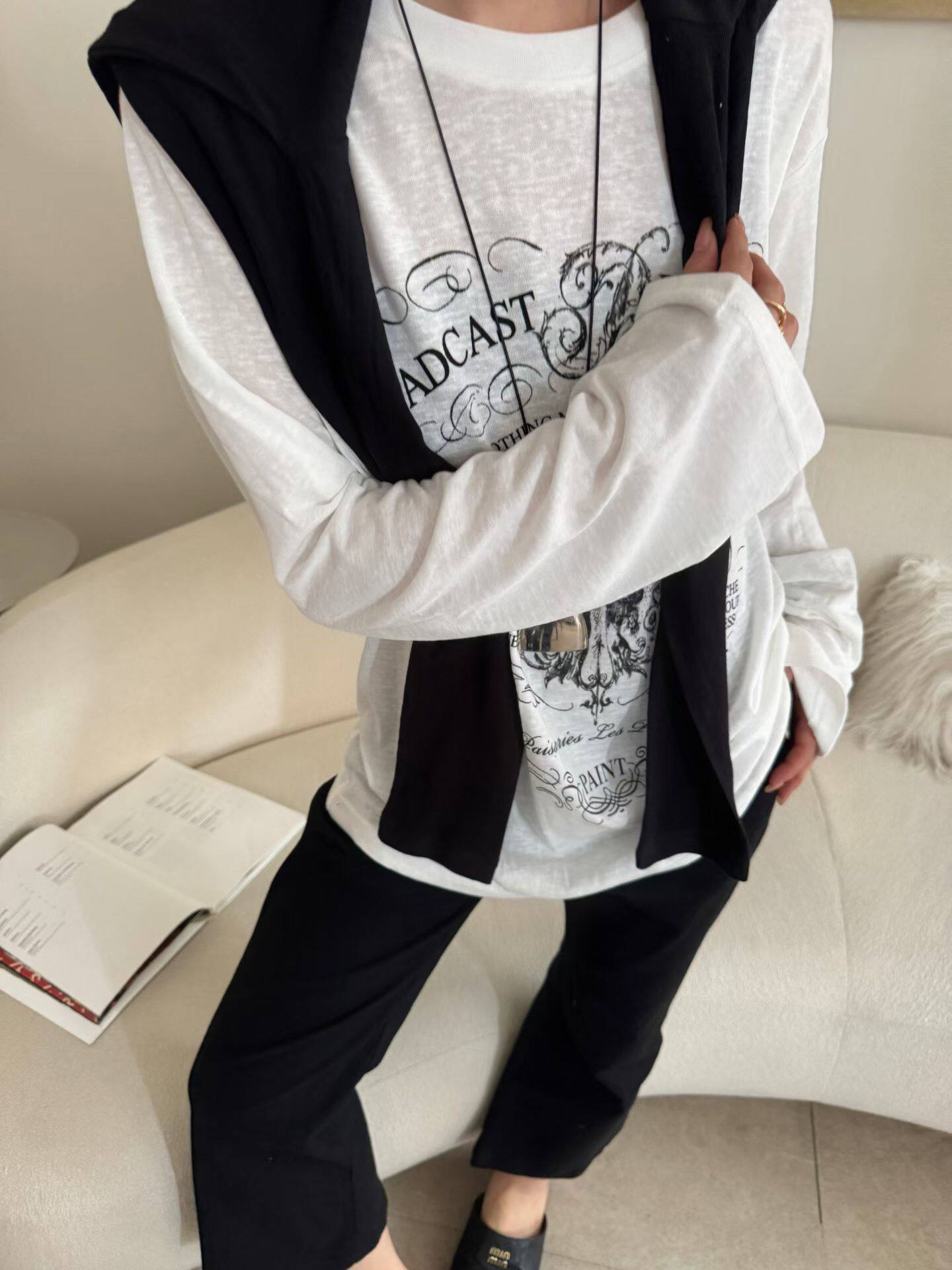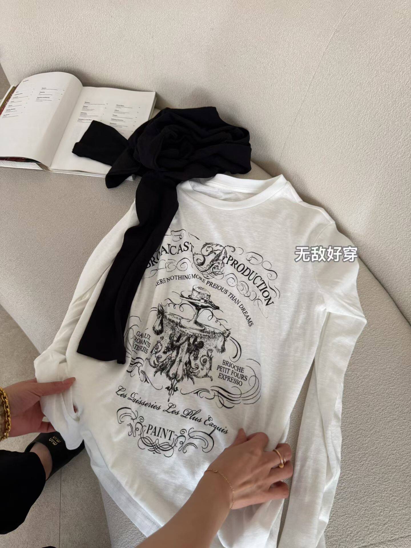 T恤防晒衣打底衫 欧洲站2026年春夏新款 印花圆领长袖 时尚 女BF正品