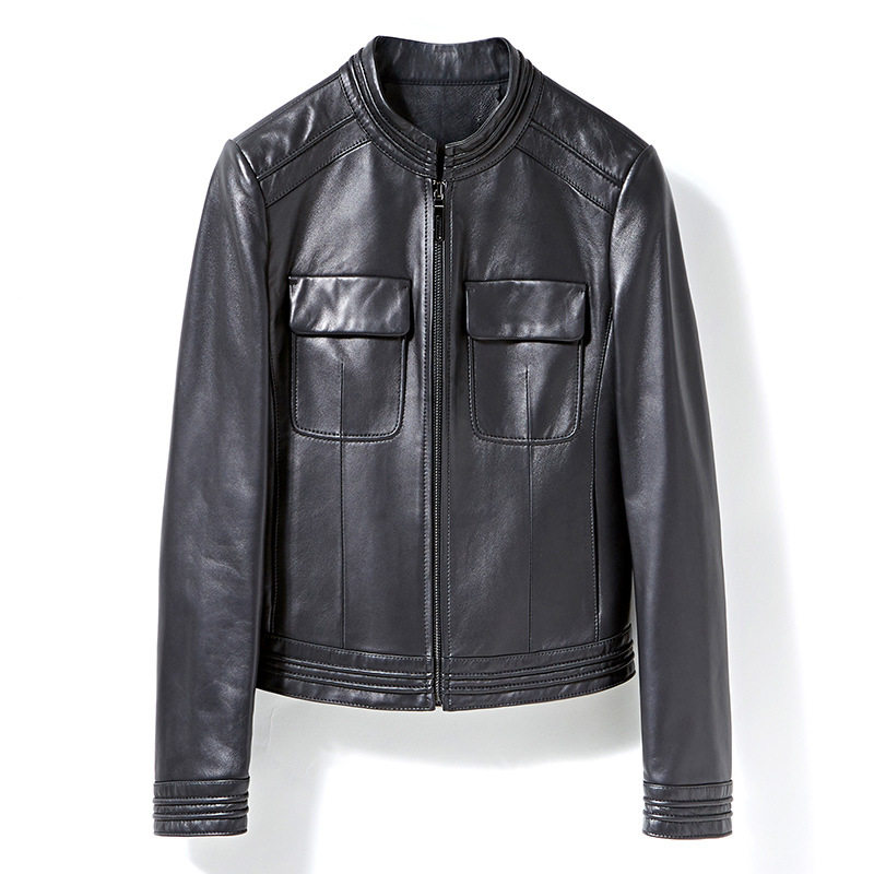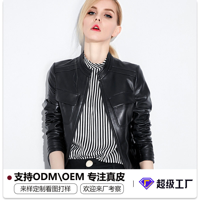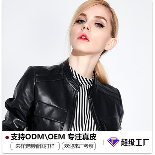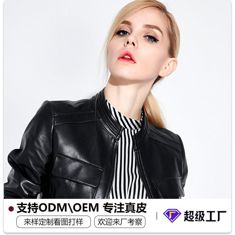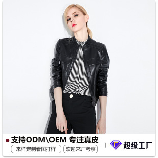 修身 黑色真皮皮衣女短款 绵羊皮单皮立领机车夹克外套 新款 春季
