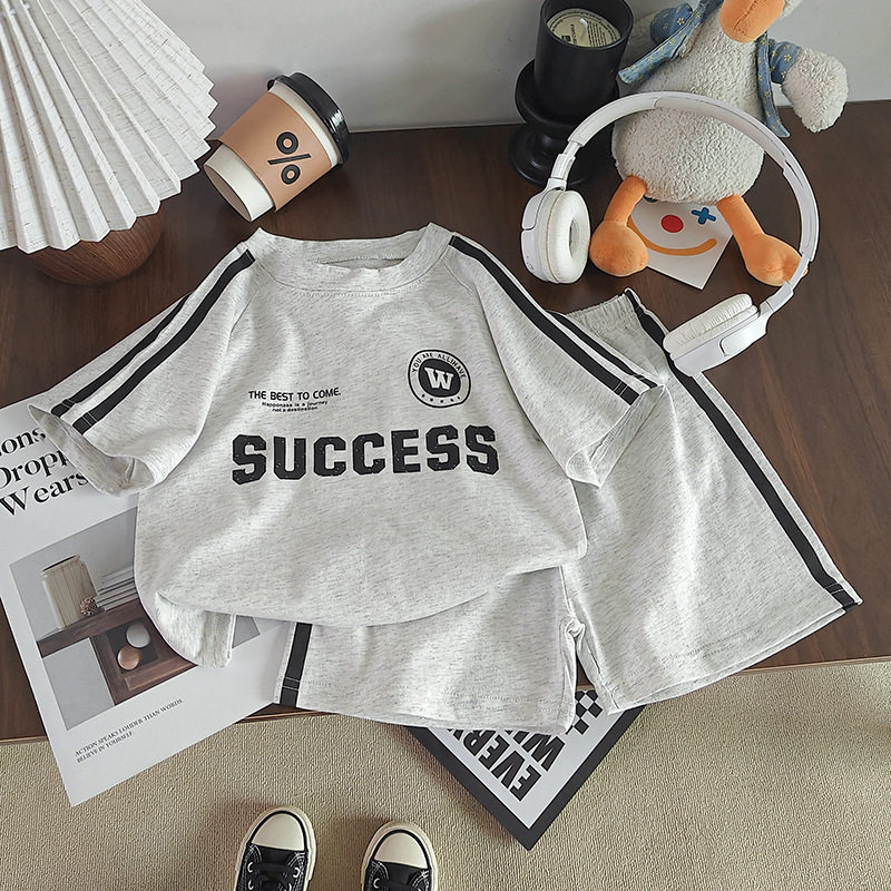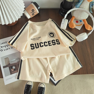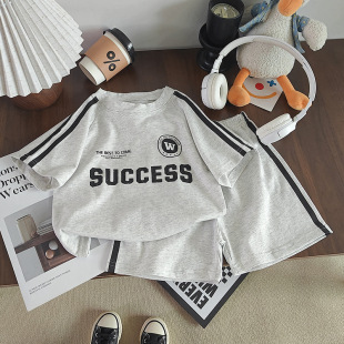 新款 夏季 男童休闲韩版 宝宝夏装 两件套潮牌 慕小橙儿童短袖 短裤 套装