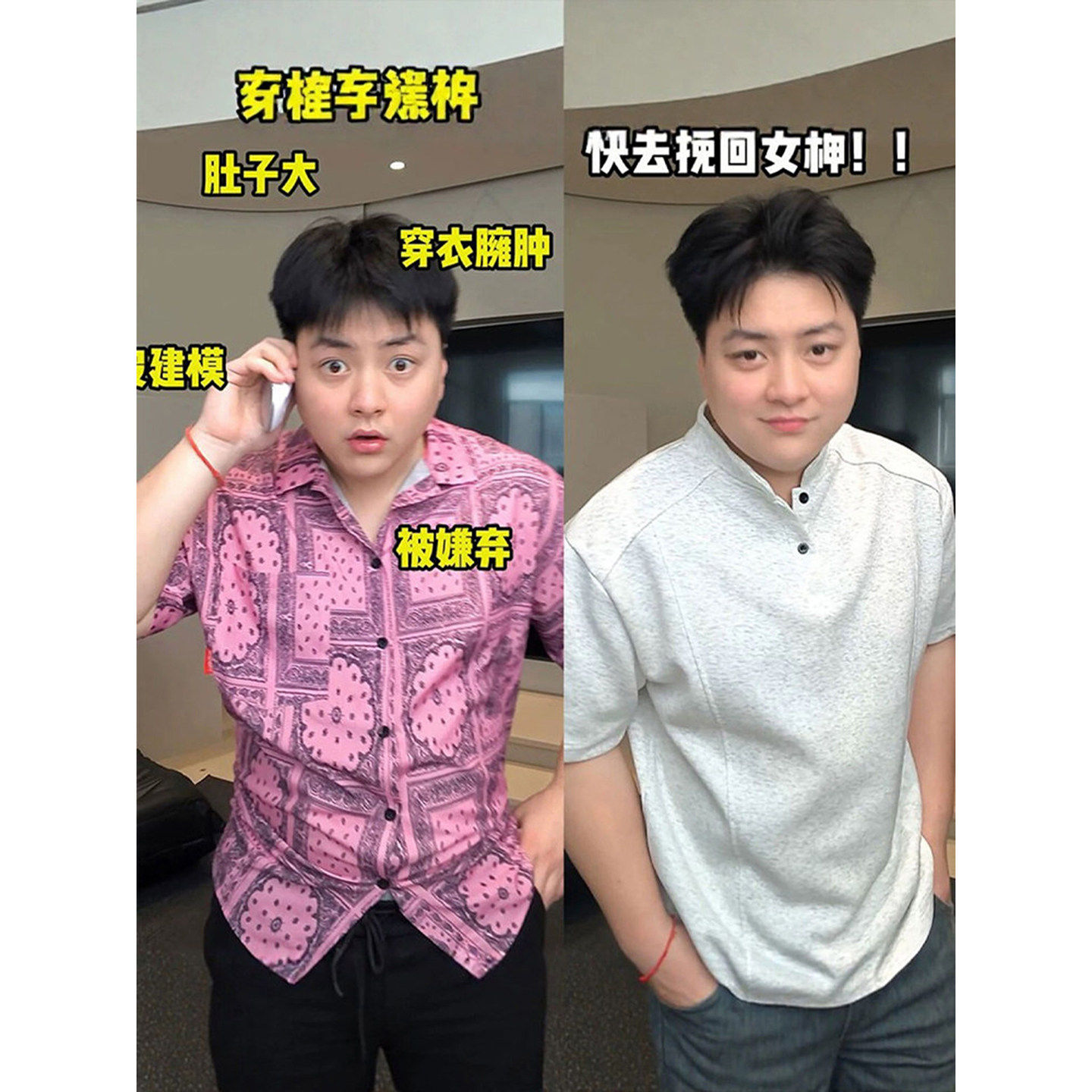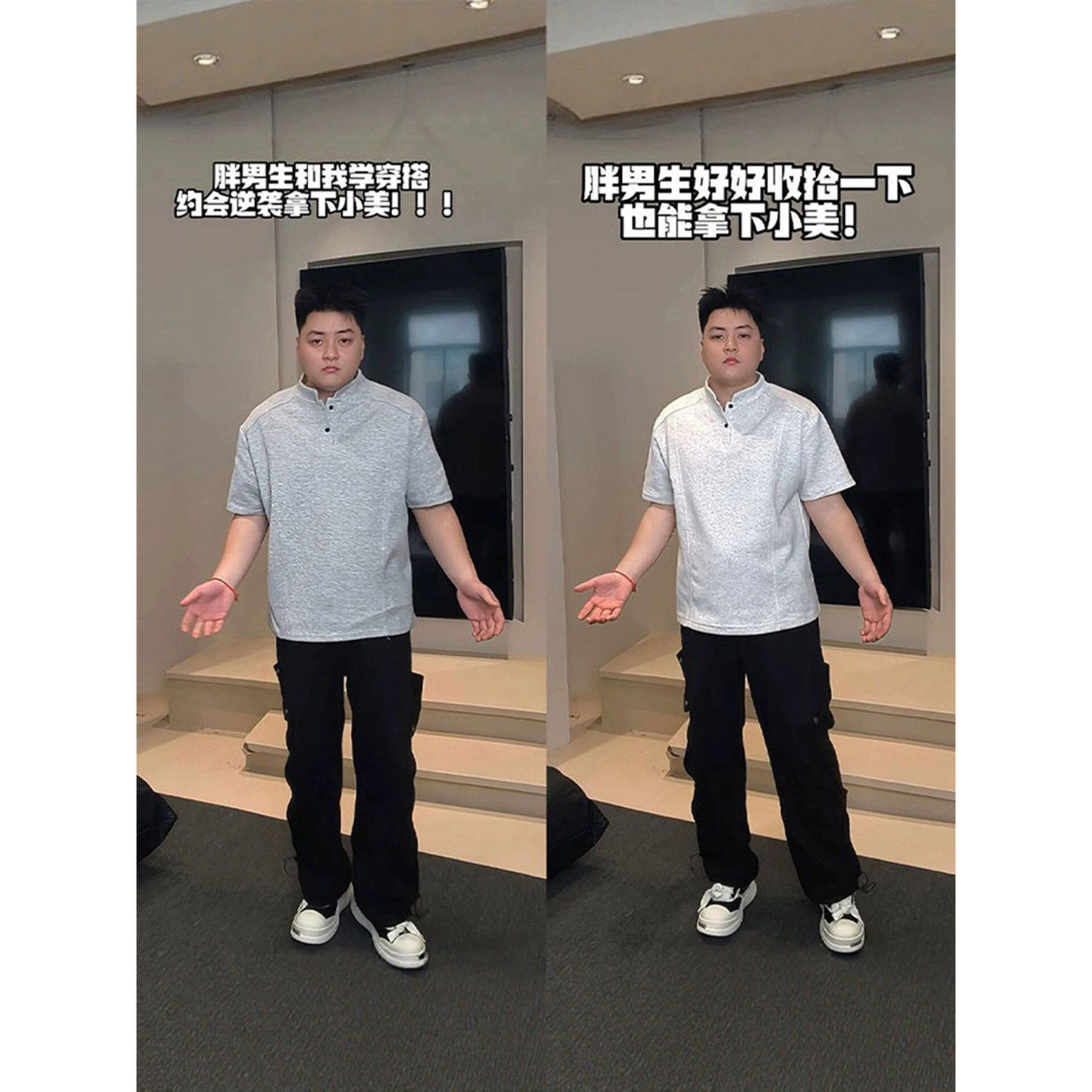 微胖男生穿搭高级感显瘦遮肉大肚子t恤 夏季 亨利领正肩短袖 polo衫