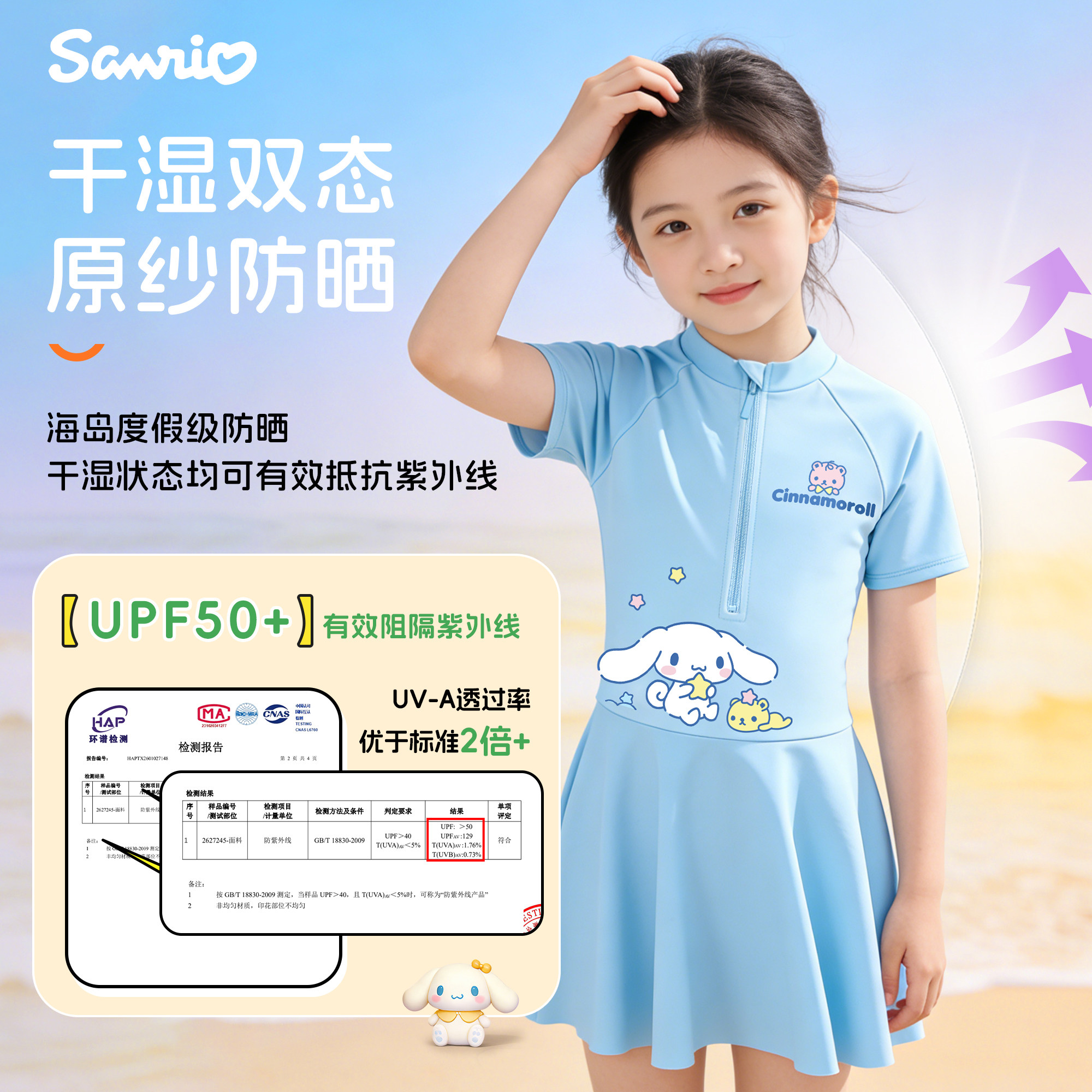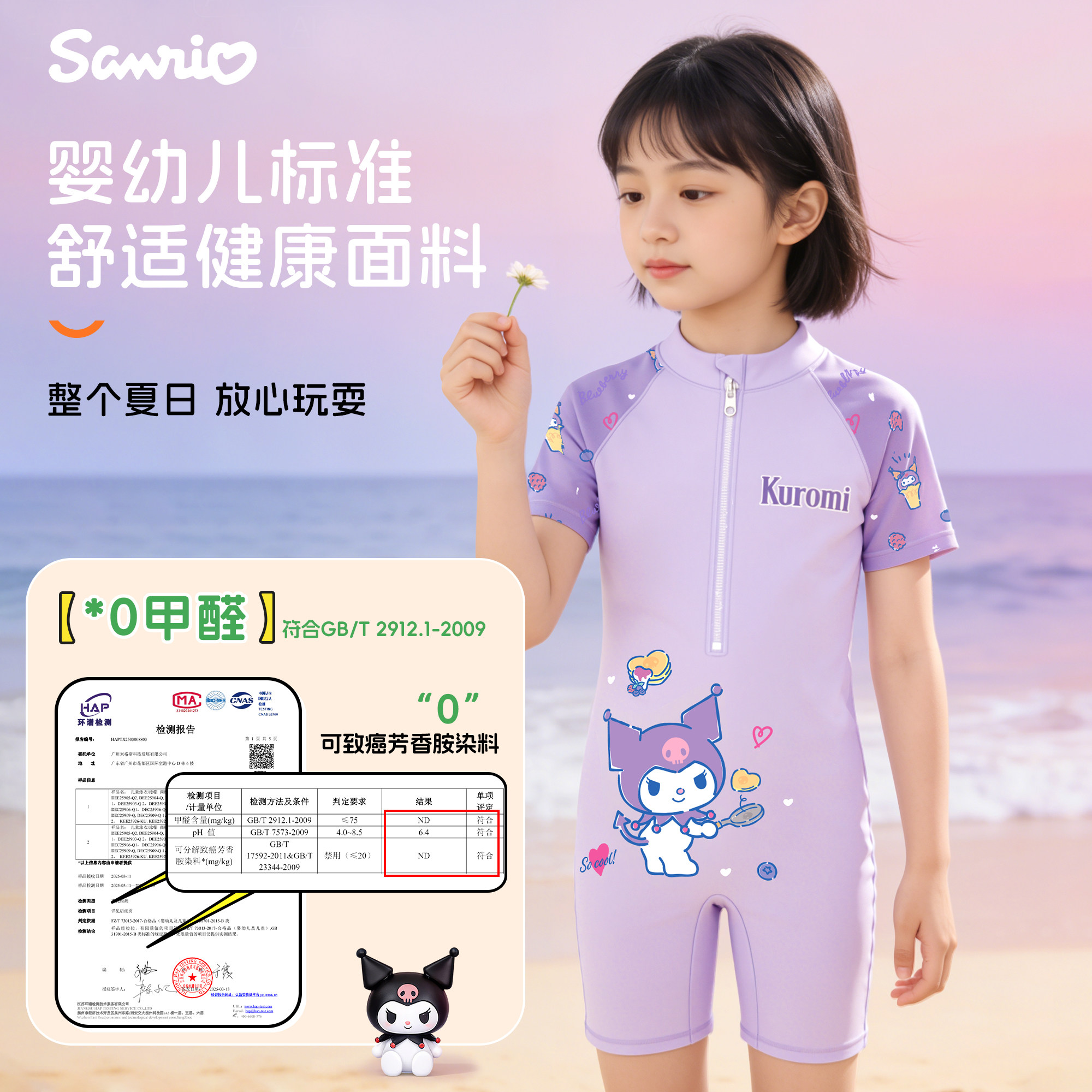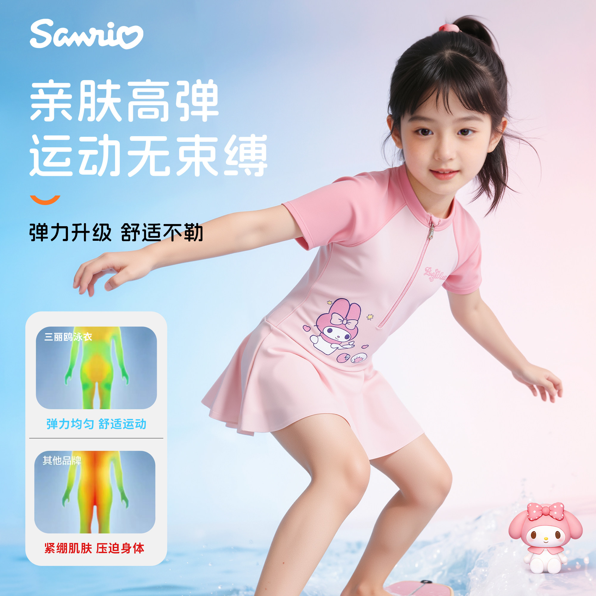 库洛米儿童连体泳衣宝宝防晒海边度假速干泳装 小女孩中大童新款