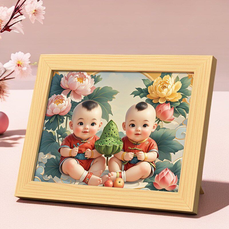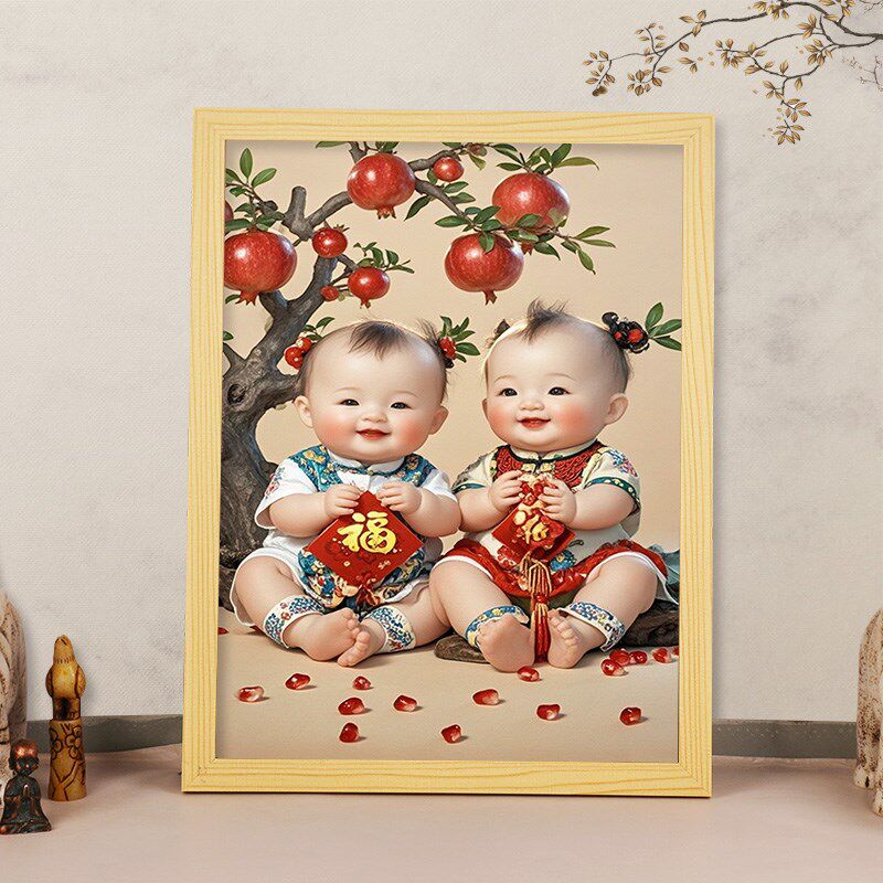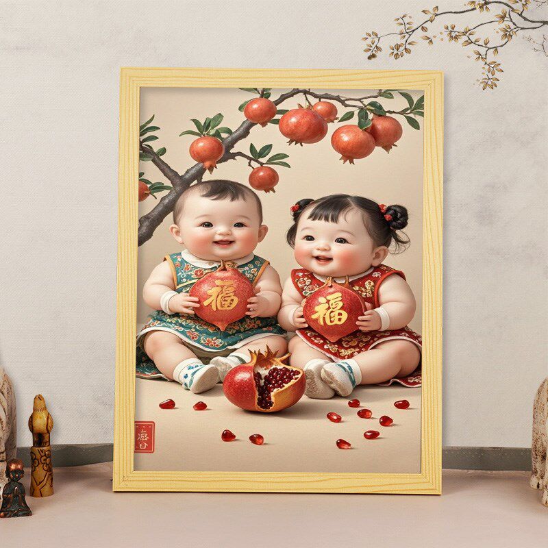 好孕画年画娃娃送子图摆件男女龙凤胎宝宝画报挂画助孕卧室装 饰画