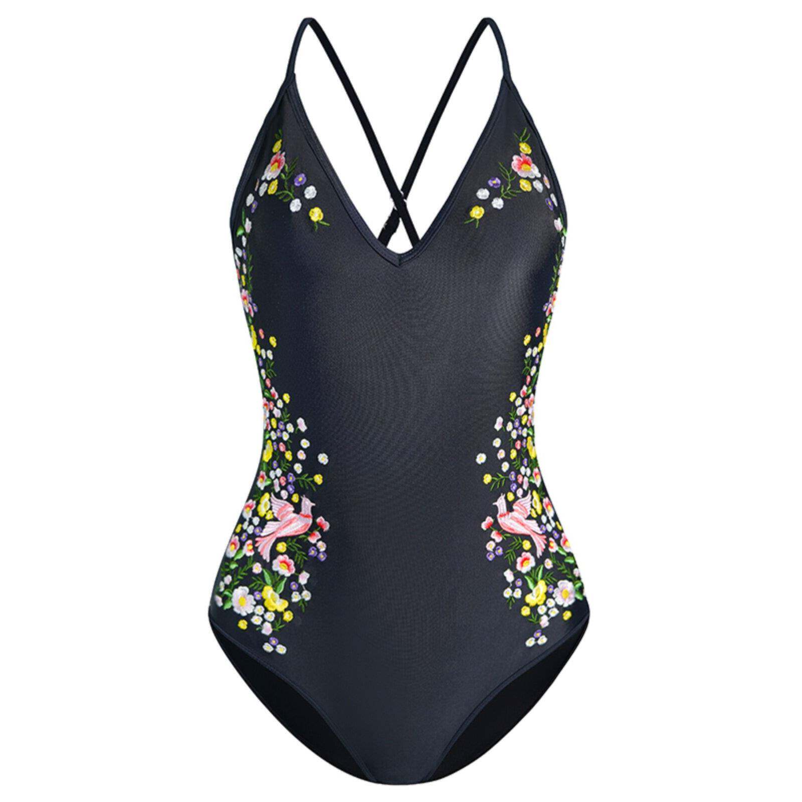 刺绣连体泳衣女高级感2026新款 v领纯欲风0318w 竞速游泳衣爆款