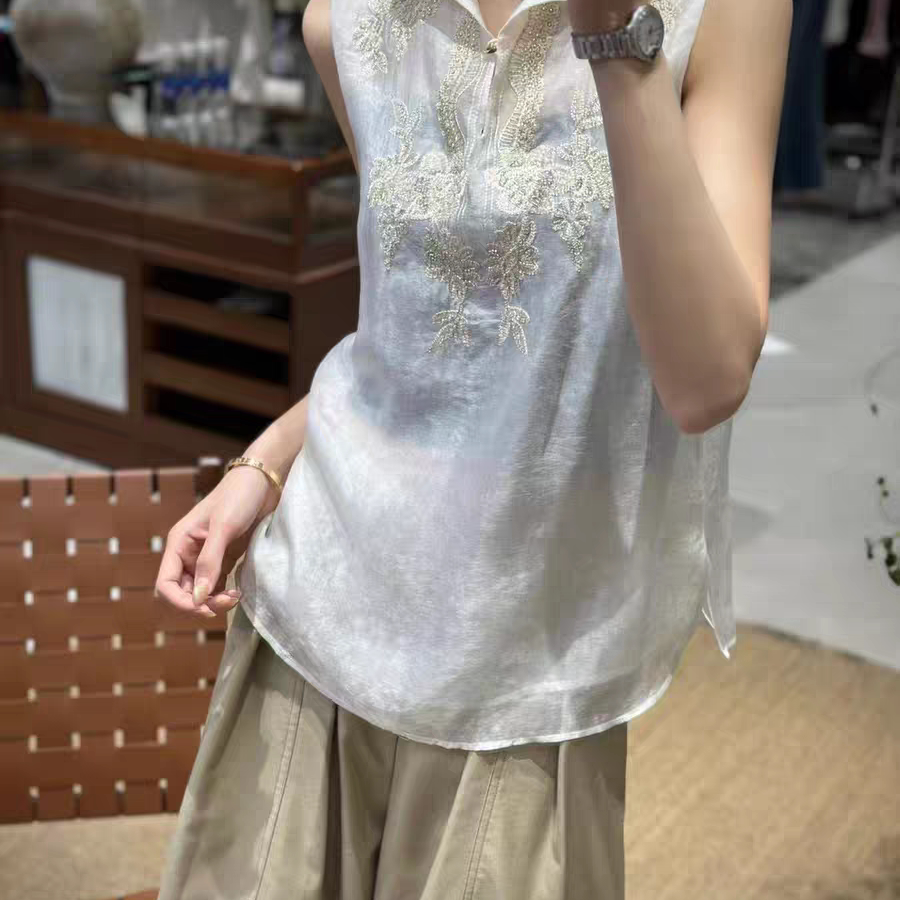 静茹2026夏上新欧货立领刺绣轻薄透气无袖 G311 背心YS111