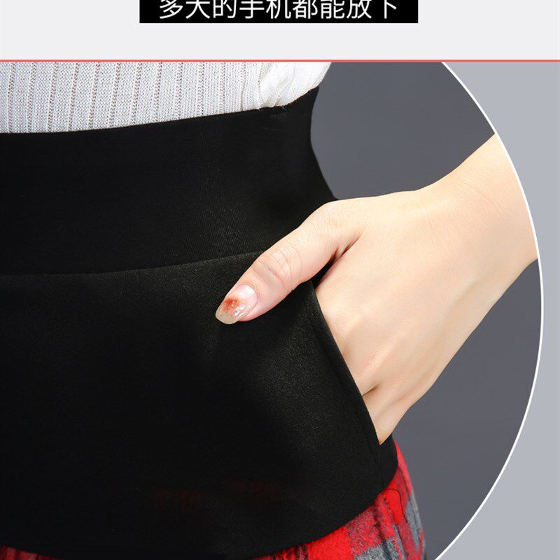 紧身裤 裙裤 裙大码 毛呢口袋百褶裤 一体女高腰加绒加厚假两件打底裤