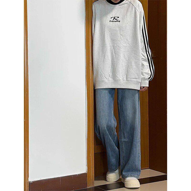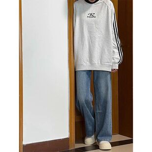 子显腿长 高腰宽松显瘦阔腿裤 梨形身材复古直筒牛仔裤 女秋冬大码